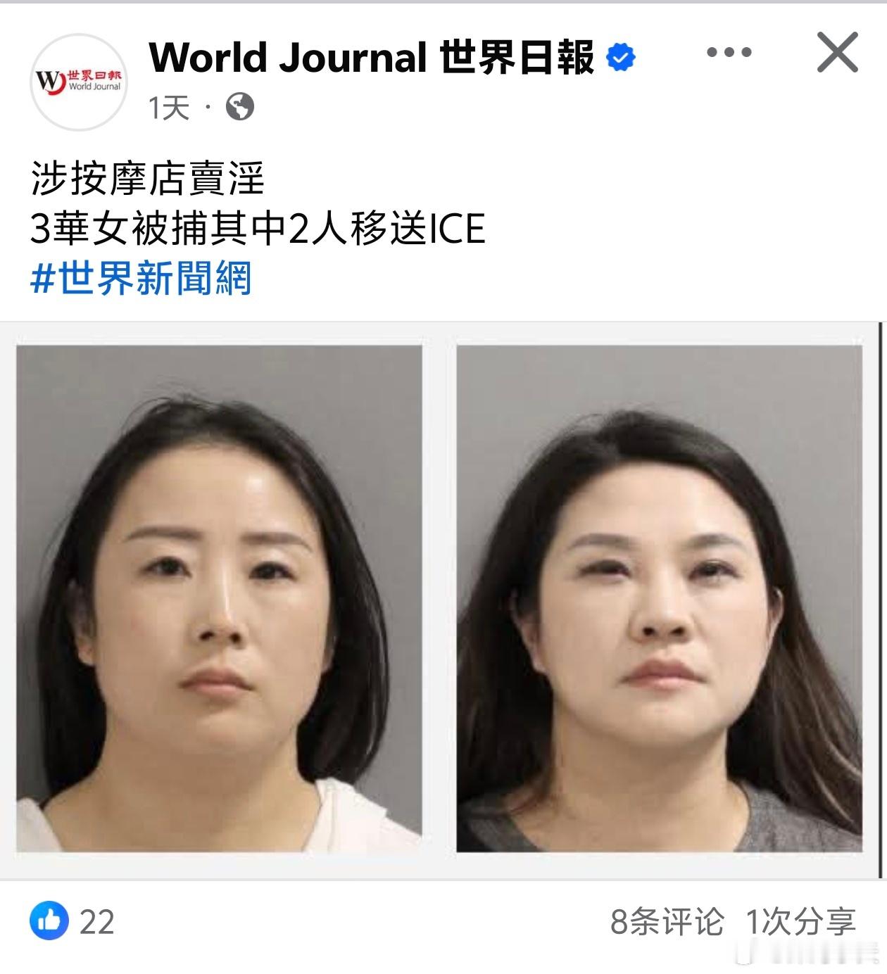 三华女在美国卖淫,二人被移交移民部门拘留
