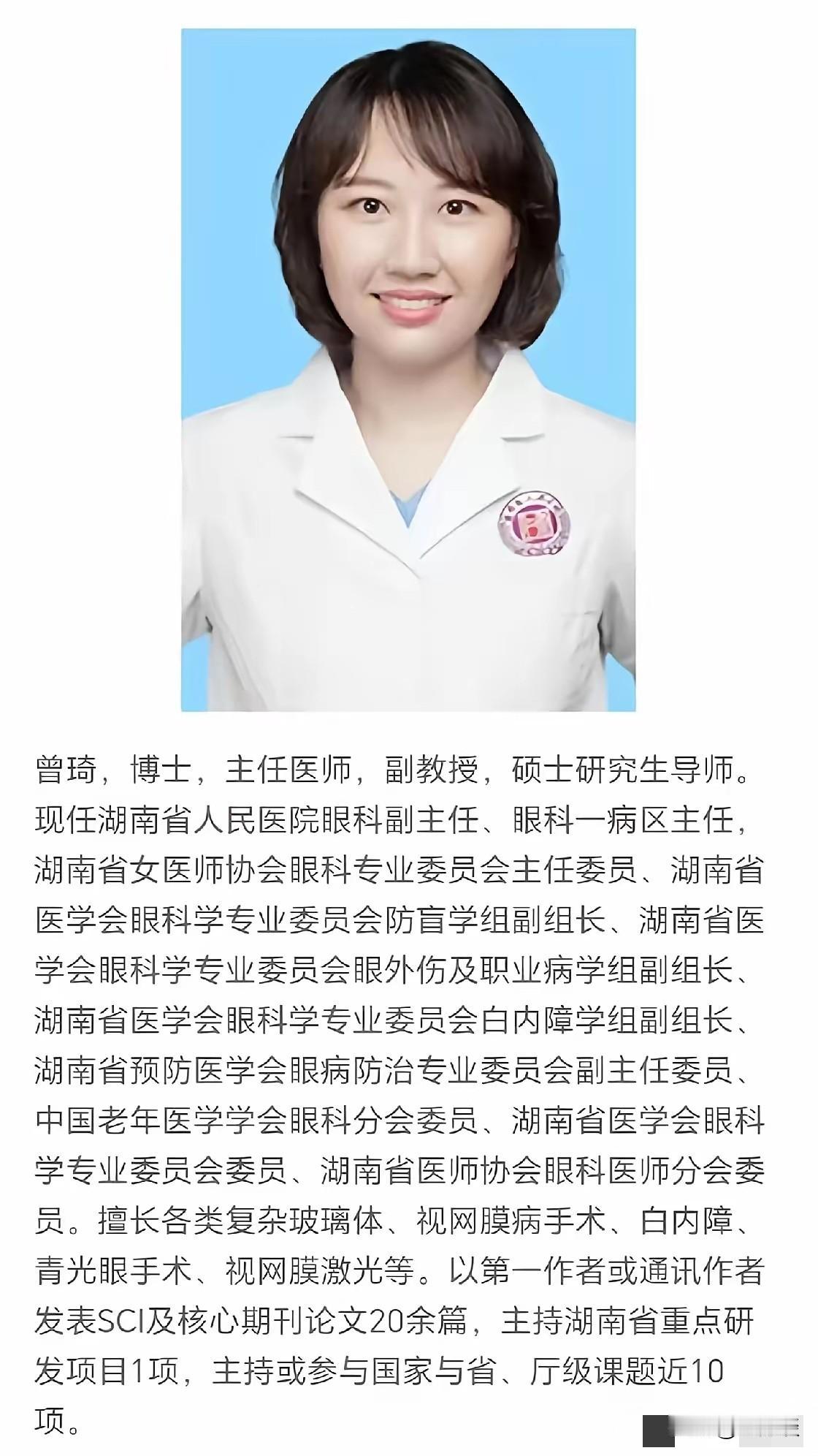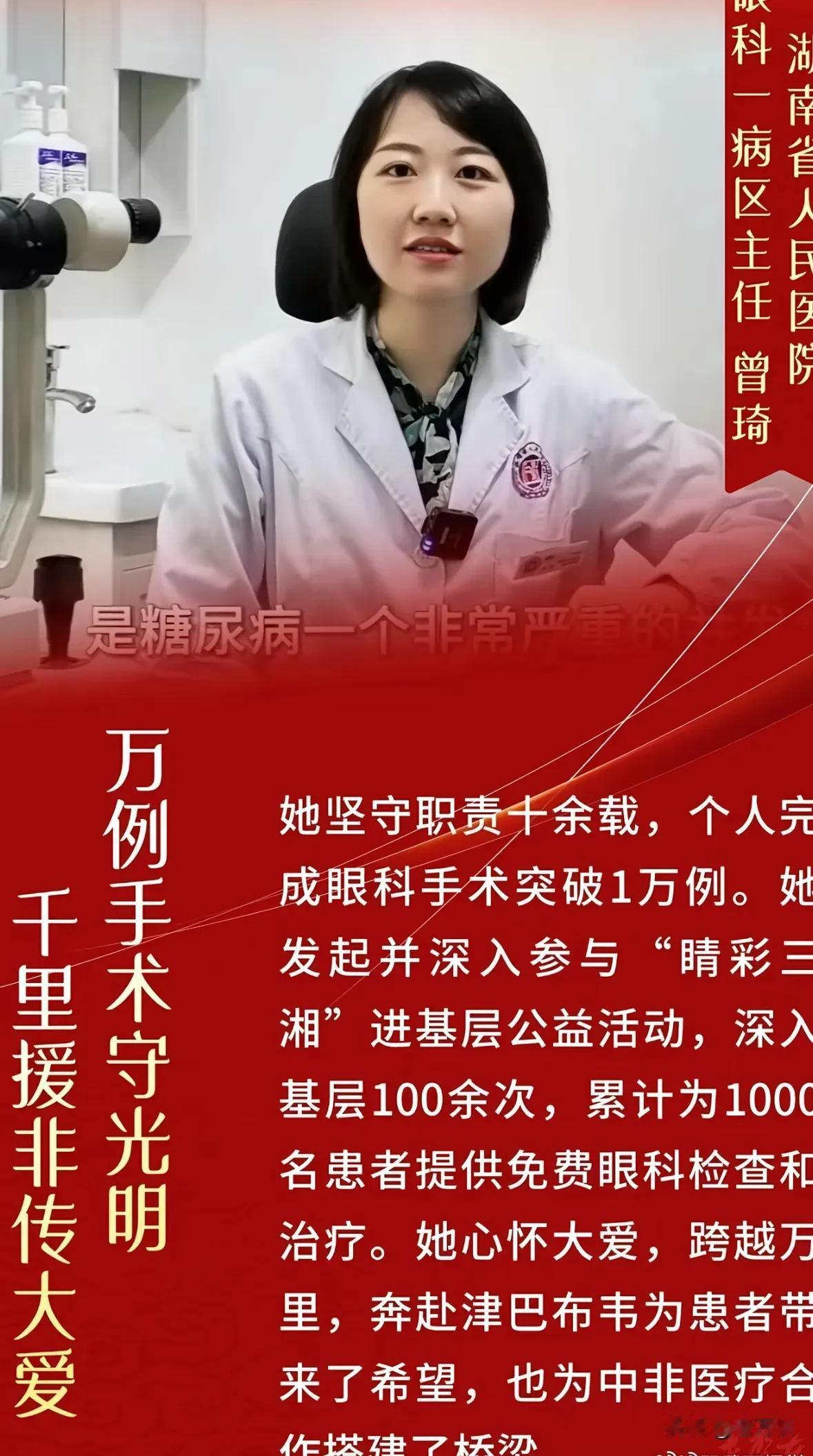 曾医生是非常优秀的!博士毕业,而且还是主任医师、硕士研究生导师,曾经还远赴非洲,给无数人带去了光明,治愈了许多人的眼疾。这样一位医者仁心的医生,走到今天真不容易!她的笑容治愈了许多人的疾病,感染了无数的患者,给大家带去了温暖,职业上她尽心尽力,无可挑剔!家庭生活,她也有幸福美满的家庭。优秀有趣的灵魂总是相互吸引!怪只能怪自己太优秀了!也想在事业上有进一步!实在是太想进步了