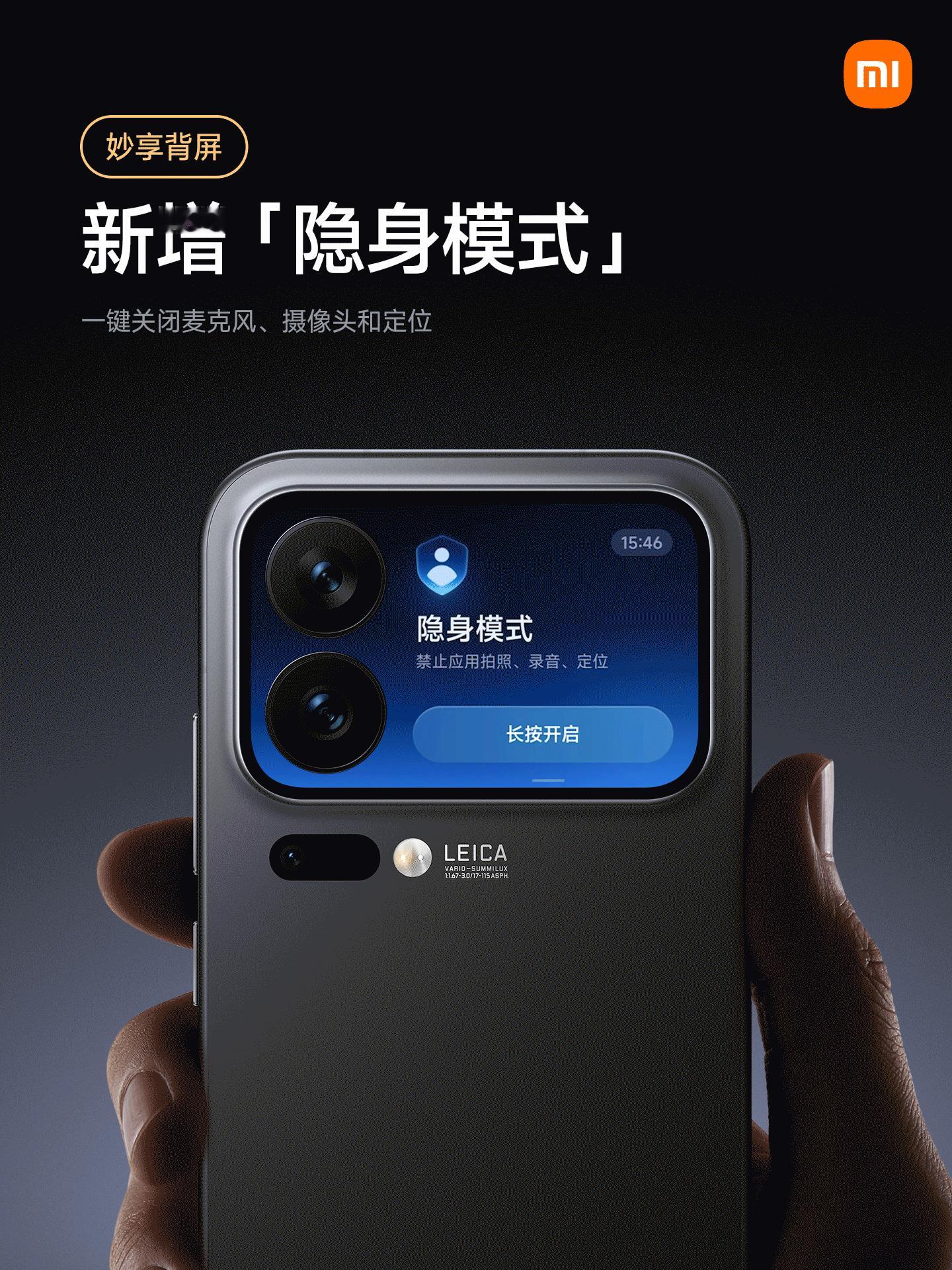 小米 17 Pro 系列背屏新增隐私模式,可以一键关闭麦克风、摄像头及定位权限,今日起陆续推送,这块背屏还真给小米玩出花样了。