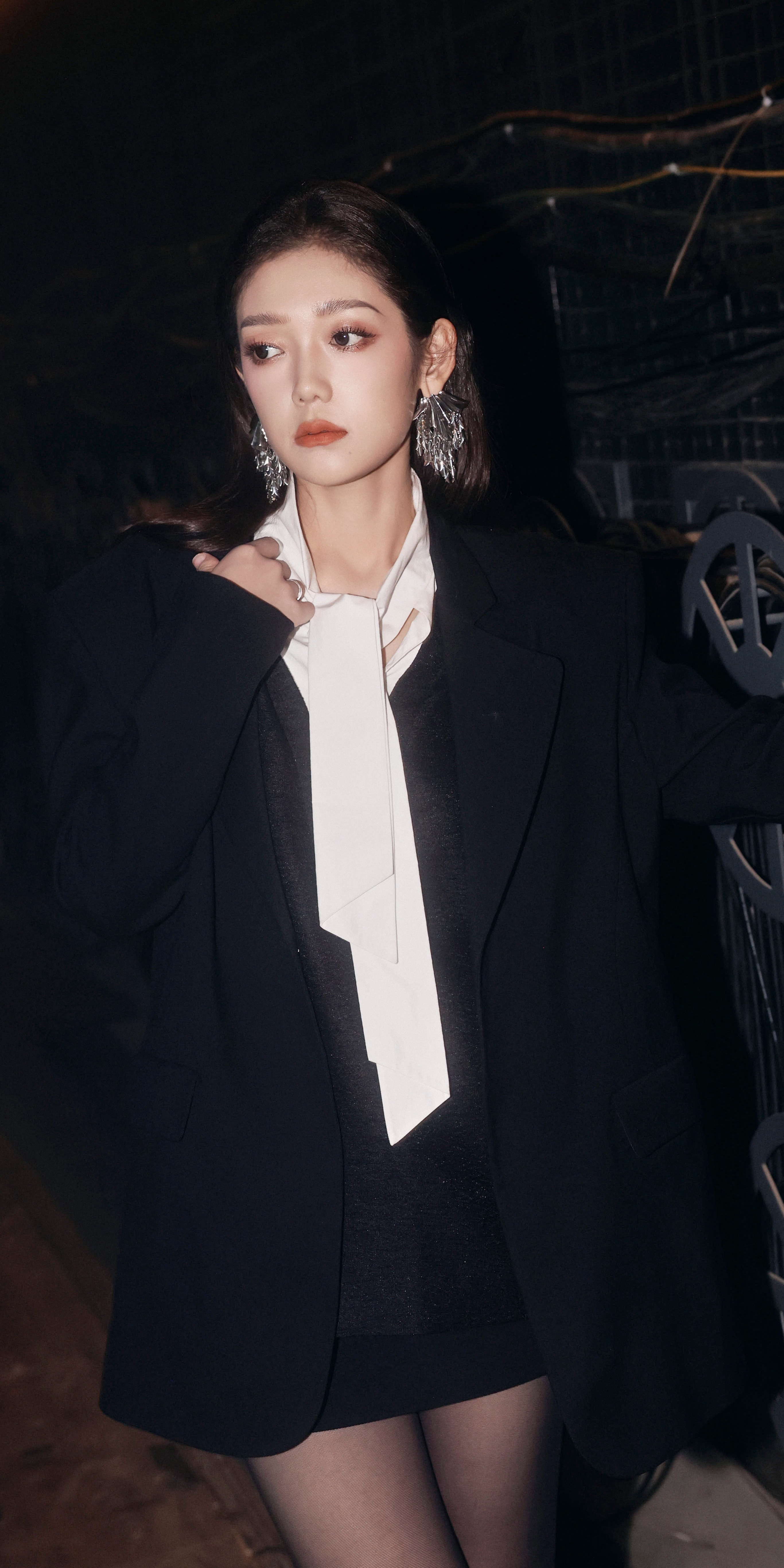 希林娜依高壁纸:丝袜妆造,黑与白色彩的高级感