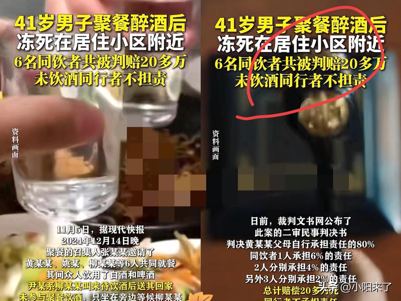 新疆,41岁的黄某某跟6个朋友聚餐,白酒加啤酒混着喝,散场后独自打车回小区。没想到独自下车冻毙小区旁! 父母索赔37万,法院判决超清醒:死者自负8成责任,召集人、同车者按过错比例掏钱,没喝酒的接送者免责,精神抚慰金一分不给! 别再拿“喝酒自愿”当借口!这判决戳破了酒局最大谎言:所谓“朋友”,不是喝嗨了就散场,而是得把人安全送到家! 灌酒时有多热情,没尽到责任时就有多狼狈,钱包“陪冻”纯属咎由自取! 酒局上的责任心,比酒量重要一万倍! 一句话:酒可以喝,安全别甩手;把人灌醉又不送到位,钱包就得“陪冻”!
