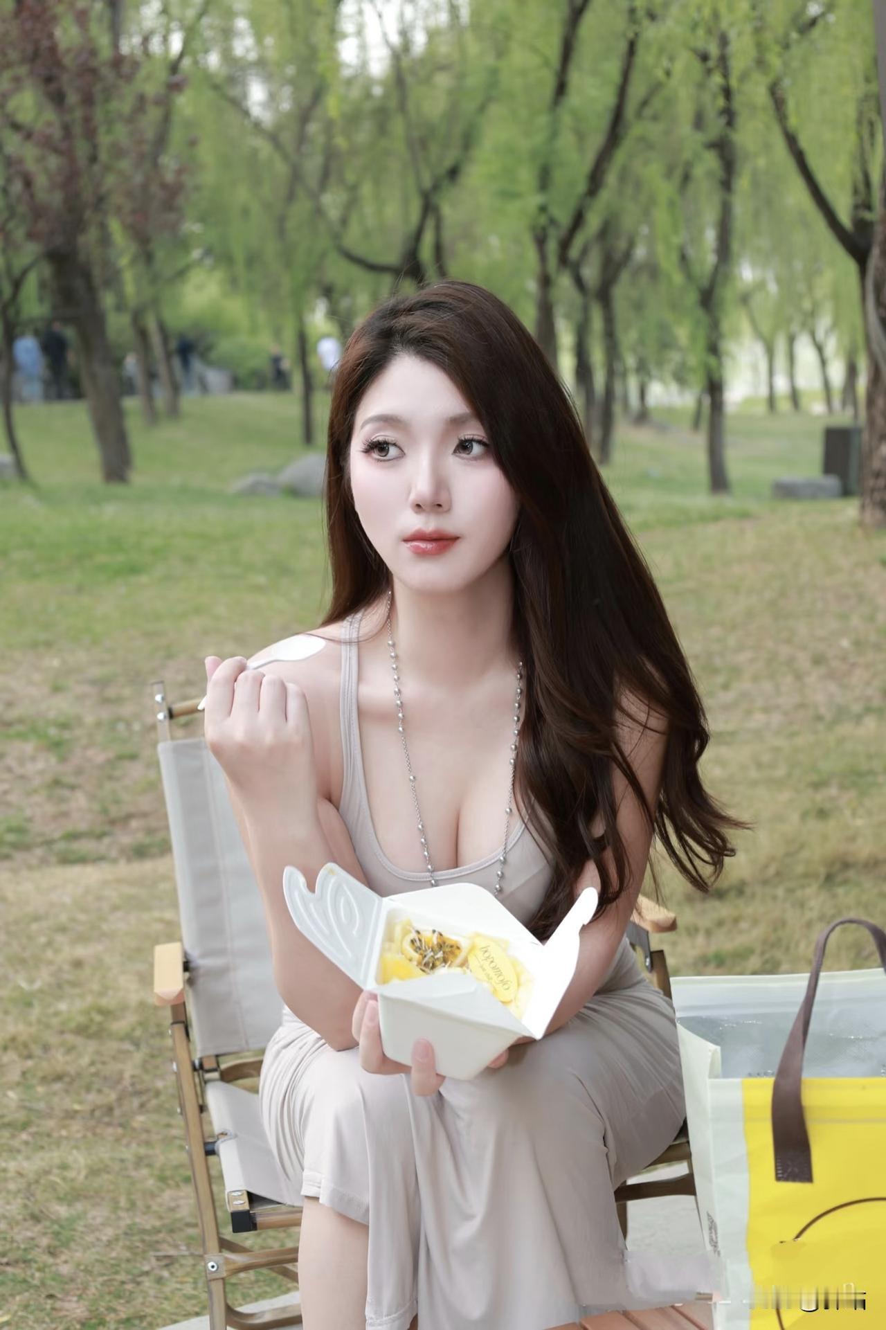美图欣赏,看图写诗 《游园食趣》 春园垂柳绿如烟, 秀色堪怜味亦鲜。 信步闲尝风物好, 柔情更与景相牵。 《春日野游》 柳风轻吻发梢, 她于葱茏绿意间悠然落座。 甜品的甘甜裹挟着草木的鲜香, 在春的诗行里, 酿成一段把清爽揉进呼吸的美好时光。 图片来源于网络