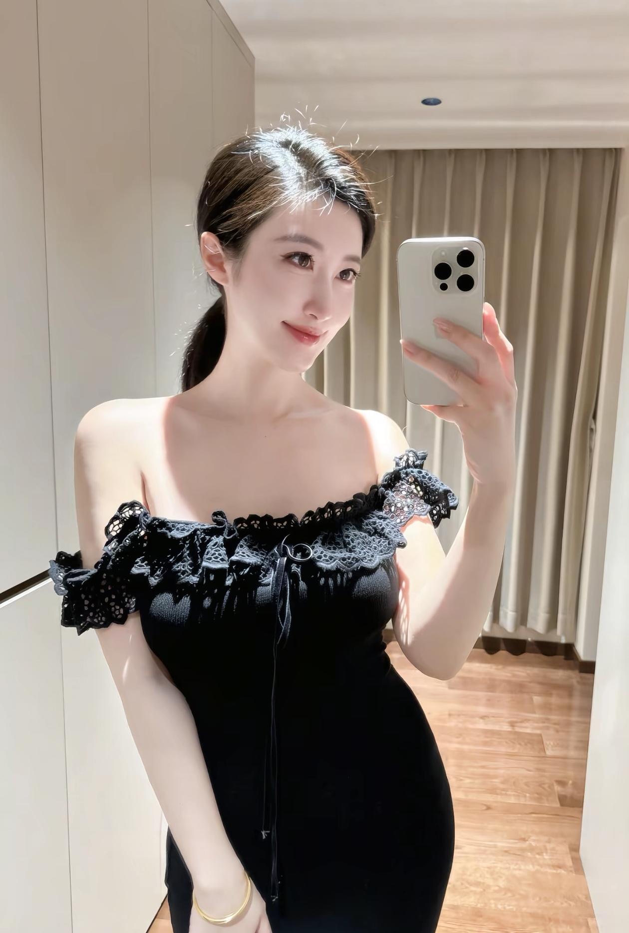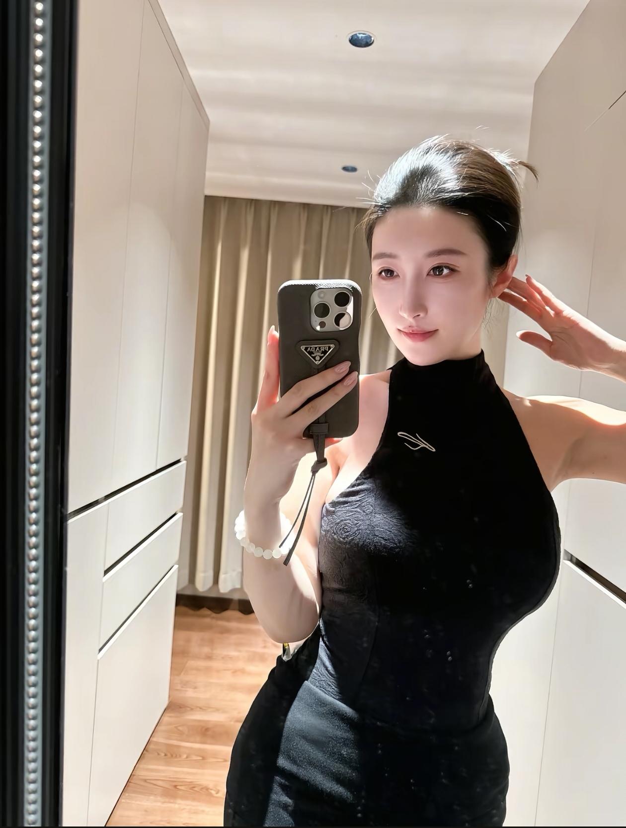 优雅黑裙自拍,尽显迷人气质!💃🏻✨