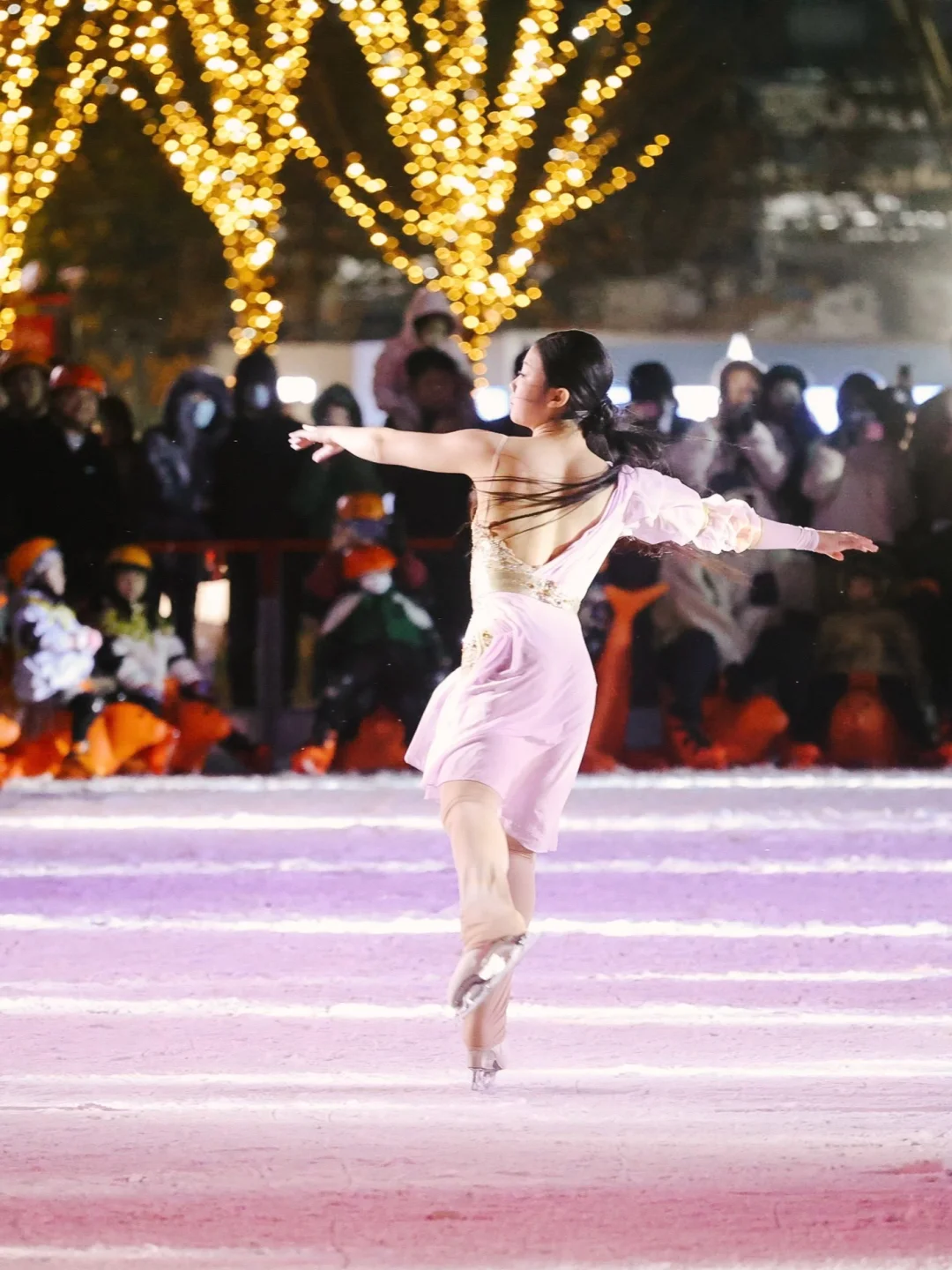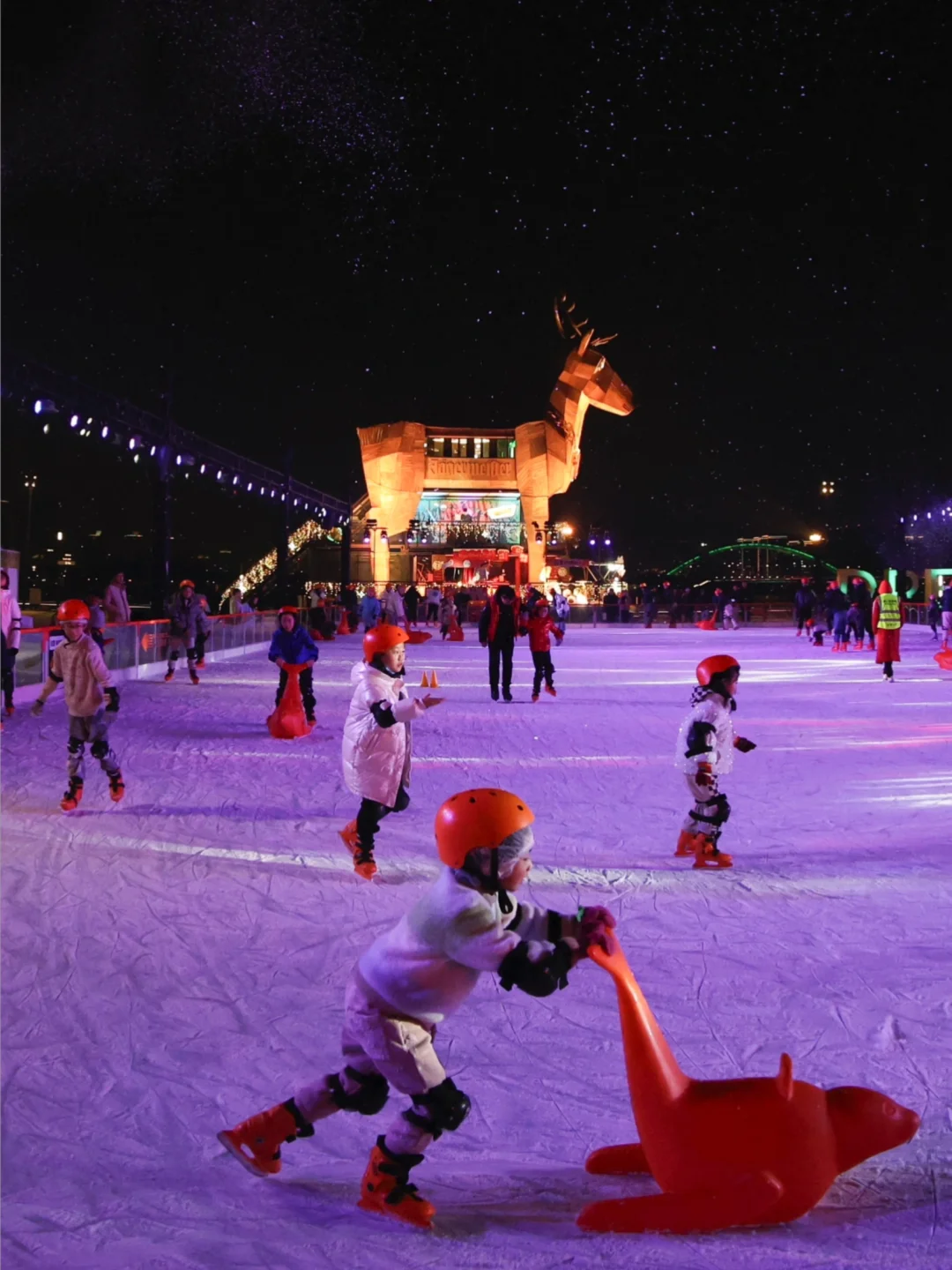 🌃傍晚人工降雪+灯光秀同步开启,会降雪的冰场和在松花江上有什么区别⁉️冰面更是流光溢彩,十分浪漫