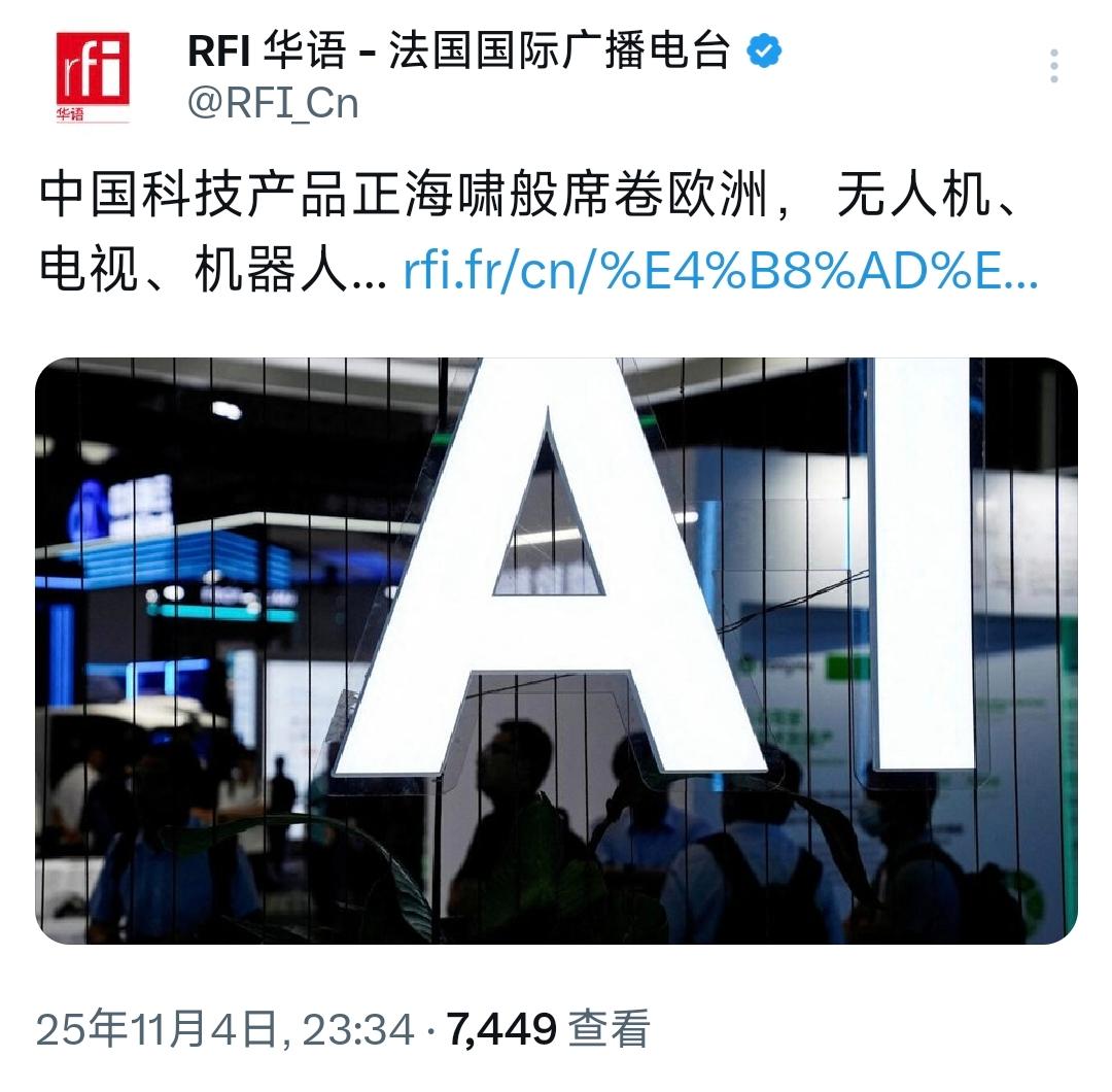 法国国际广播电台11月4日晚报道:“中国科技产品正海啸般席卷欧洲, 无人机、电视、机器人……现今欧洲市场正被来自中国的无人机、电视、机器人等的科技产品浪潮淹没中。法媒指出,中国在经济上的发展不再满足于模仿,而是不断创新,以具有竞争力的价格提供尖端产品。 面对中国科技产品这股海啸般的冲击,欧洲似乎束手无策……”   如果说十年前,中国制造在欧洲人的印象中还停留在“便宜货”、“代工厂”的阶段,那么当下的局面,显然已经和过去大不相同。   无人机飞进了农场、电视挂上了客厅、扫地机器人成了家庭标配,这些过去由本土品牌主导的领域,正在悄然被中国品牌占领。   以无人机为例,法国媒体特别提到,这一领域几乎已经变成了中国品牌的天下。以大疆为代表的中国无人机企业,已经在全球市场建立起难以撼动的技术优势和品牌认知。   欧洲的同行们在技术上被拉开了差距,在价格上则根本无法匹敌。这不是一场简单的价格战,而是一场综合能力上的较量。一旦市场认知形成,后发者想要扭转局面,就得付出难以想象的成本。   而在电视和家庭机器人这些消费电子产品领域,中国的崛起同样迅速。法国媒体在报道中提到,中国品牌不仅在硬件上实现高端化,还在软件生态、用户交互上不断优化,体验感逐步赶超传统欧洲品牌。   更关键的是,这些产品在保持高性能的同时,售价却远低于欧洲本土品牌。这种“高质低价”的组合,本身就具备极强的市场穿透力。   欧洲消费者并不会因为情怀而放弃性价比高的选择,更不会在经济压力下为“本土优先”买单。   法国媒体的担忧并非个例。在德国、荷兰、意大利等国家,类似的声音也频频出现。欧洲企业界对中国科技产品的涌入,既佩服又焦虑。   佩服的是中国企业在研发、制造和供应链上的高效整合能力,焦虑的是本土企业在资本、政策和市场响应上的迟缓。   尤其在当前欧洲经济增长乏力、通胀压力持续的大背景下,消费者对价格的敏感度更高,而中国科技产品恰恰抓住了这一点。   但法国媒体似乎忽略了一个更根本的问题:中国科技产品的崛起,并不是凭空而来,而是建立在长期制度支持、技术积累和市场机制之上的。   从国家层面鼓励科技创新,到企业自身加大研发投入,中国的科技企业并不是“靠低价打天下”,而是通过不断自我革新,逐步掌握了核心技术和全球市场话语权。   法国媒体用“模仿”到“创新”的转变来形容中国科技的发展轨迹,这一变化虽然真实,但并不新鲜。   早在几年前,中国科技企业就已经跨过了模仿阶段,进入了自主创新的快车道,这只是欧洲媒体直到现在才真正意识到罢了。   从法国媒体的报道中可以看出,他们对这种趋势既有惊讶,也有些许无奈。欧洲市场曾经是技术输出地,如今却变成了中国科技产品的接受者,这种角色的转换,会带来心理上的不适。   但市场规律从来不讲情面,技术进步和产品力才是硬道理。中国科技产品于欧洲市场立足,并非依赖补贴,更非低价倾销。其凭借的是深度洞察消费者需求,并持之以恒优化产品体验的卓越能力,以此赢得市场认可。   更值得一提的是,中国科技企业在进入欧洲市场的过程中,并没有选择强攻硬上,而是通过本地化运营、尊重法律法规、参与社区建设等方式,逐步建立起良好的品牌形象。   这是一种极具战略智慧的方式,既没有引发社会抵触情绪,也在潜移默化中提升了品牌认同感。这种软实力的建设,或许比技术优势更难被复制。   法国国际广播电台的这篇报道,从某种意义上也算是一种“被动认可”。当一国媒体开始用“海啸”来形容他国企业的影响力时,某种程度上已经说明了其在本国市场的地位不容忽视。   中国科技产品的全面崛起,不是偶然事件,而是多年深耕细作的结果。对欧洲来说,真正的挑战并不是如何限制中国企业进入,而是如何在规则之下实现自我革新,找到新的竞争力。   归根结底,市场的选择总是最真实的写照。当欧洲消费者用脚投票,选择中国科技产品的时候,说明中国制造的标签,已经不再是过去那种廉价代名词,而是一种融合创新、性价比与全球视野的新符号。 素材来源:中国科技产品正海啸般席卷欧洲, 无人机、电视、机器人…04/11/2025 - 16:23