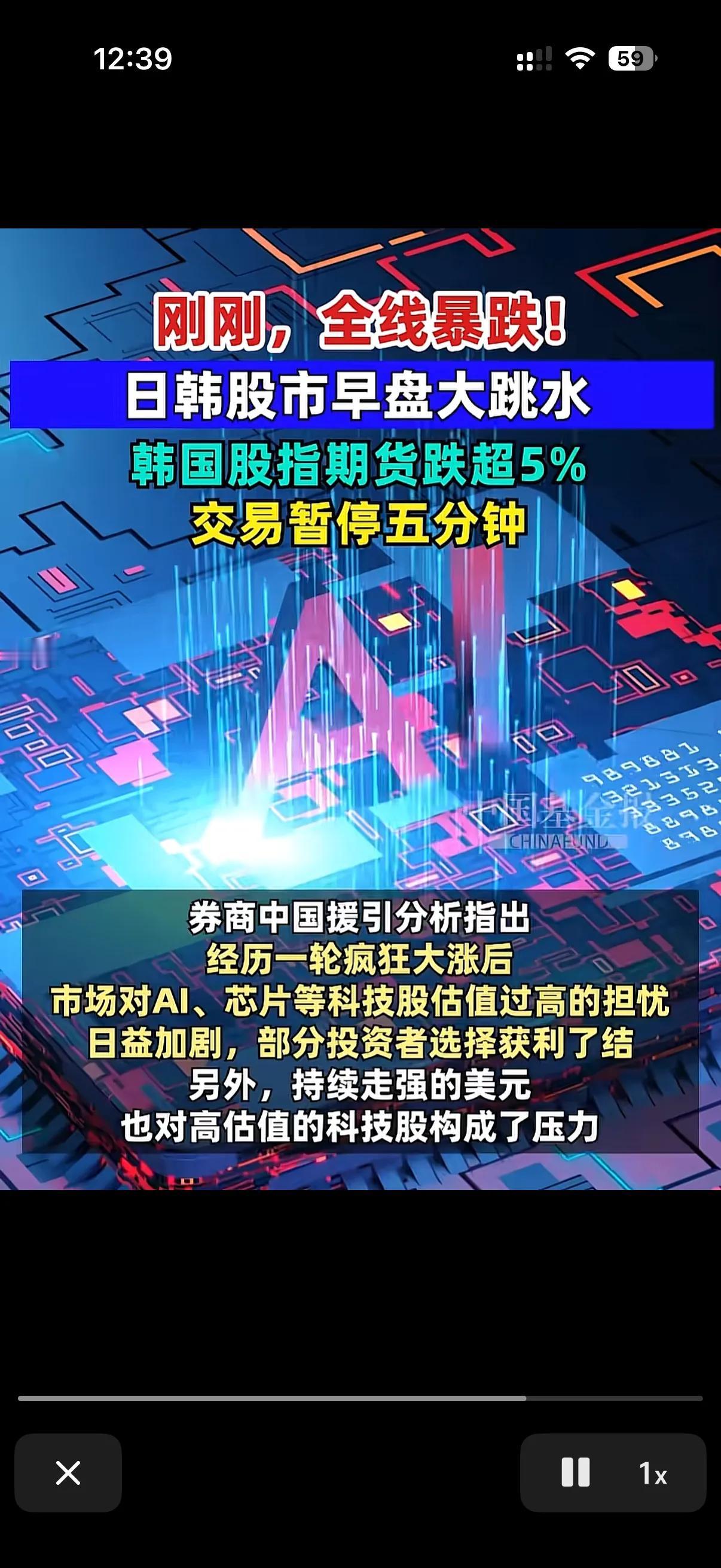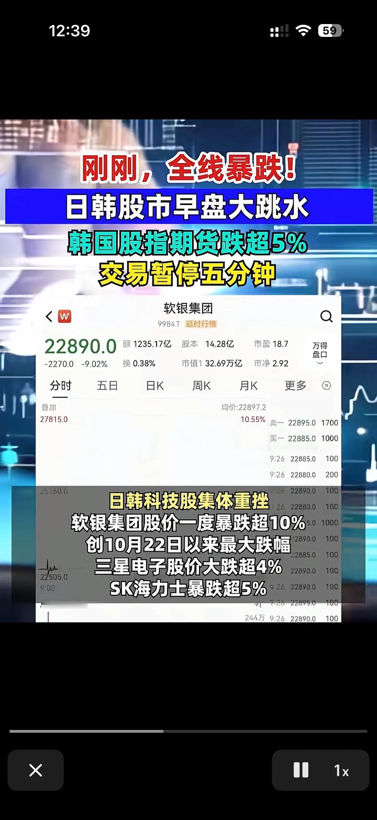 日韩股市开盘就暴跌!10.5日上午日韩股市开盘就遭遇了暴跌! 要知道最近无论是日本市场还是韩国市场都是在不断的传来好消息! 这次突然爆发的股市下跌让很多人都摸不到头脑! 有人猜测,韩国的股市下跌,很有可能是有人在做空英伟达导致的牵连! 要知道最近英伟达的黄仁勋刚去韩国和韩国的财阀一起吃饭,并且高调的宣布要加深合作! 可以说塞翁失马焉知非福了! 不过很多人担心,国内的a股会因为日韩的股市遭到牵连,毕竟亚洲经济一体化!但是上午国内a股扛住了冲击依然保持上涨!中午又有重大利好消息!中美互降低关税从11.9号开始! 相信这些利好消息将会维持股市上涨!