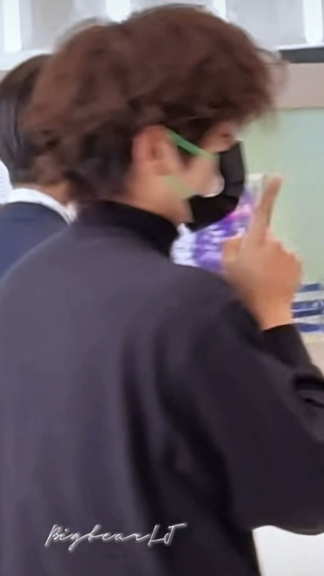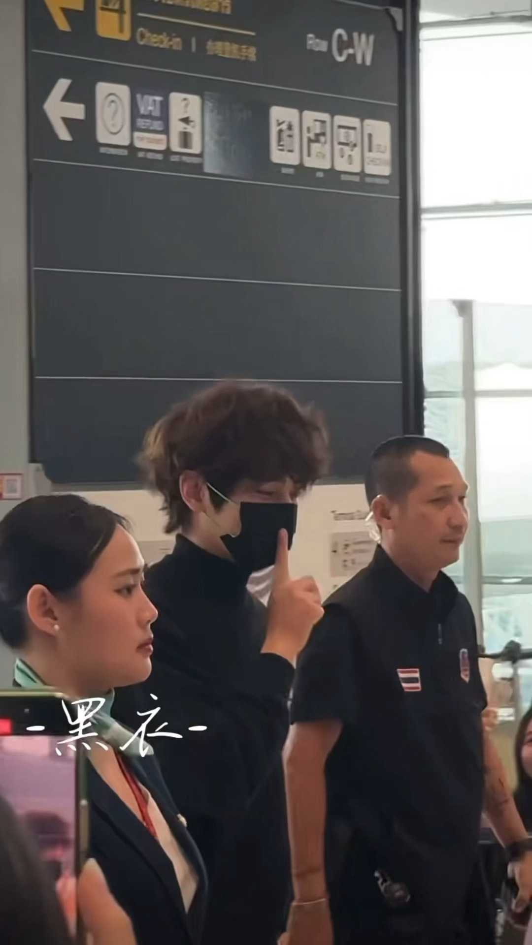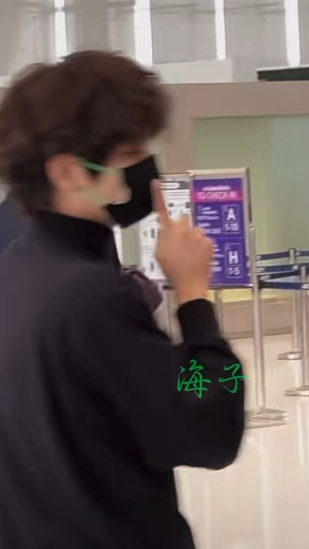 炸毛小丁回国啦,还和粉丝比嘘示意,超级可爱[抱一抱]