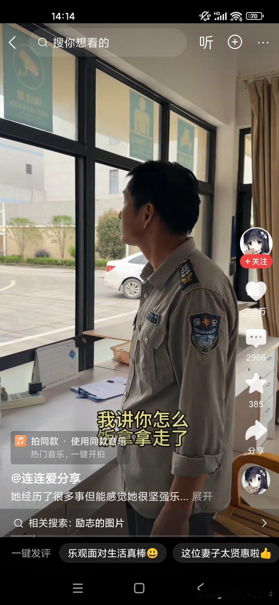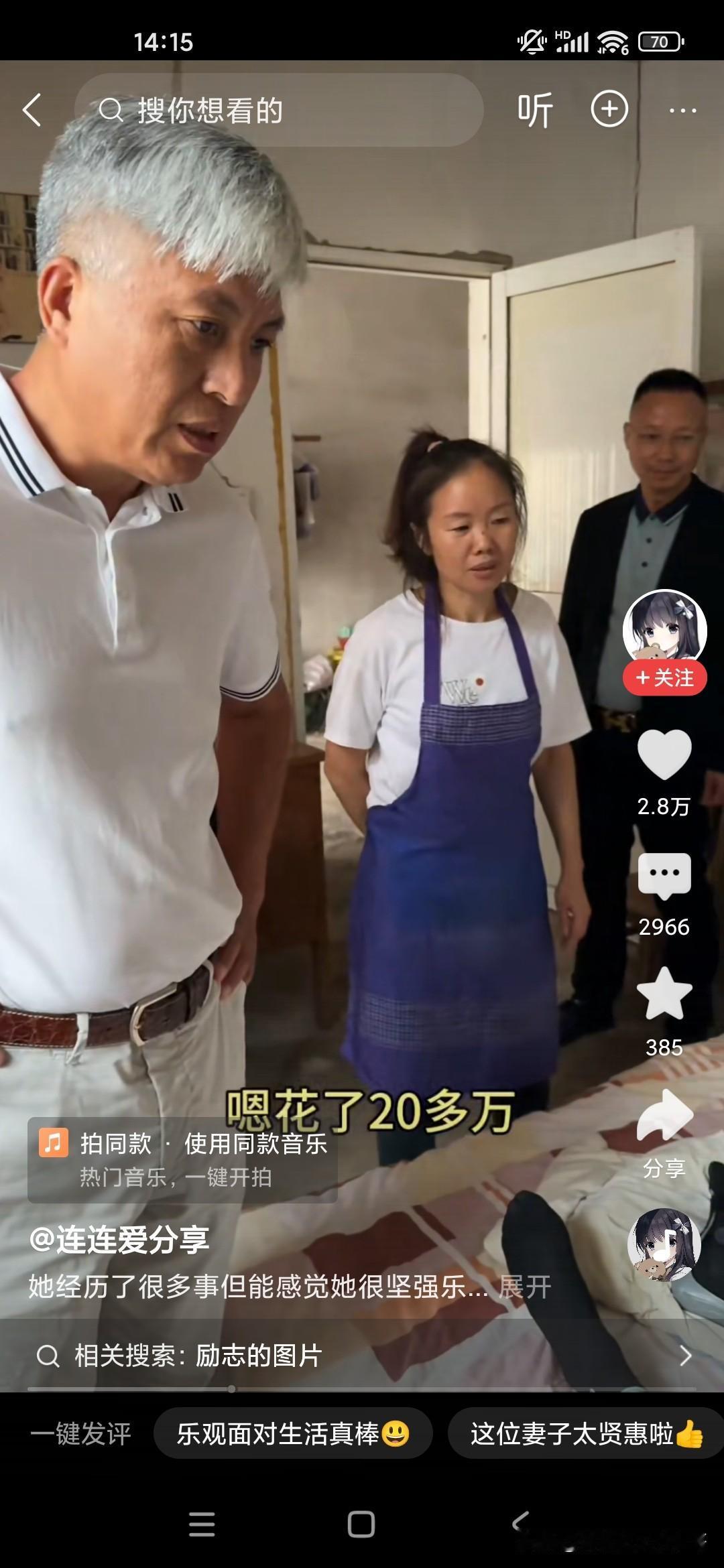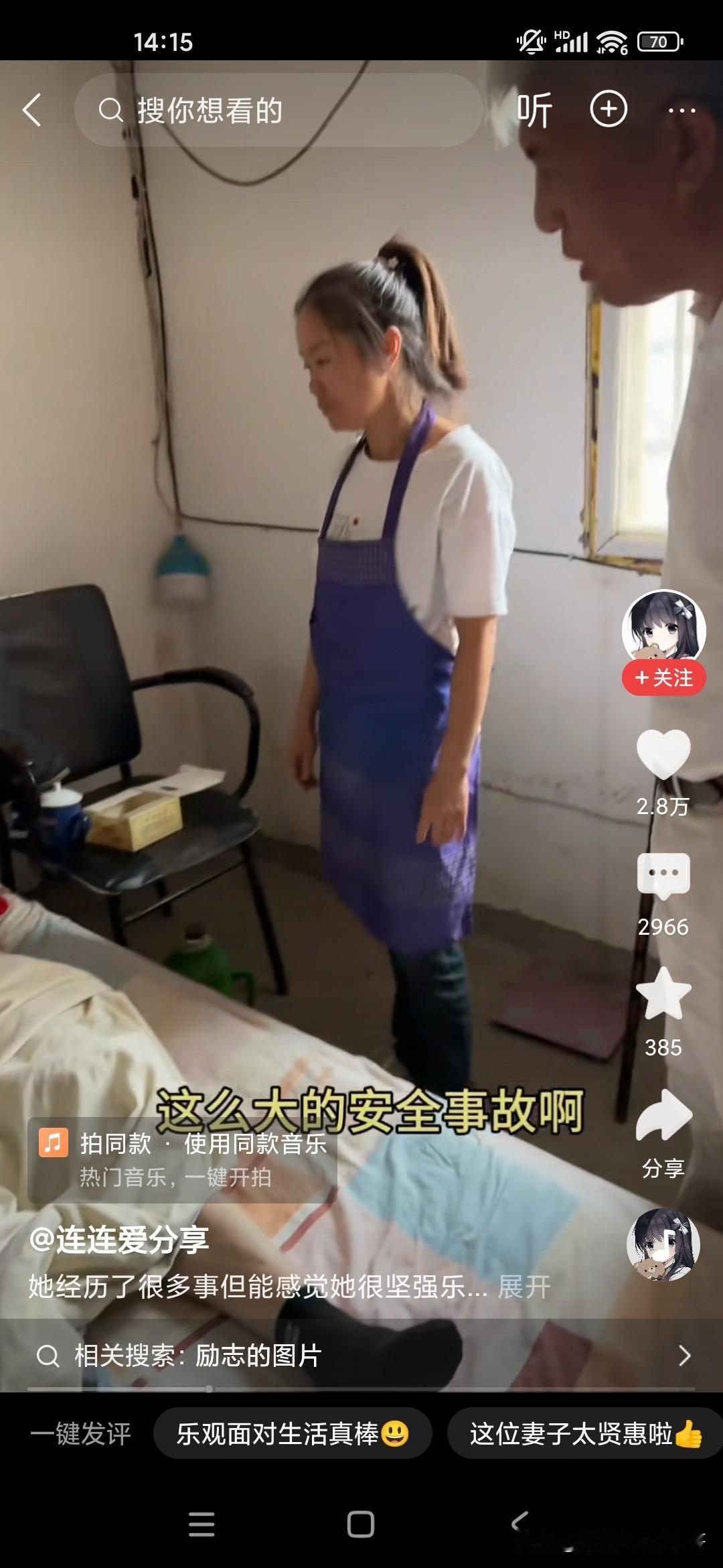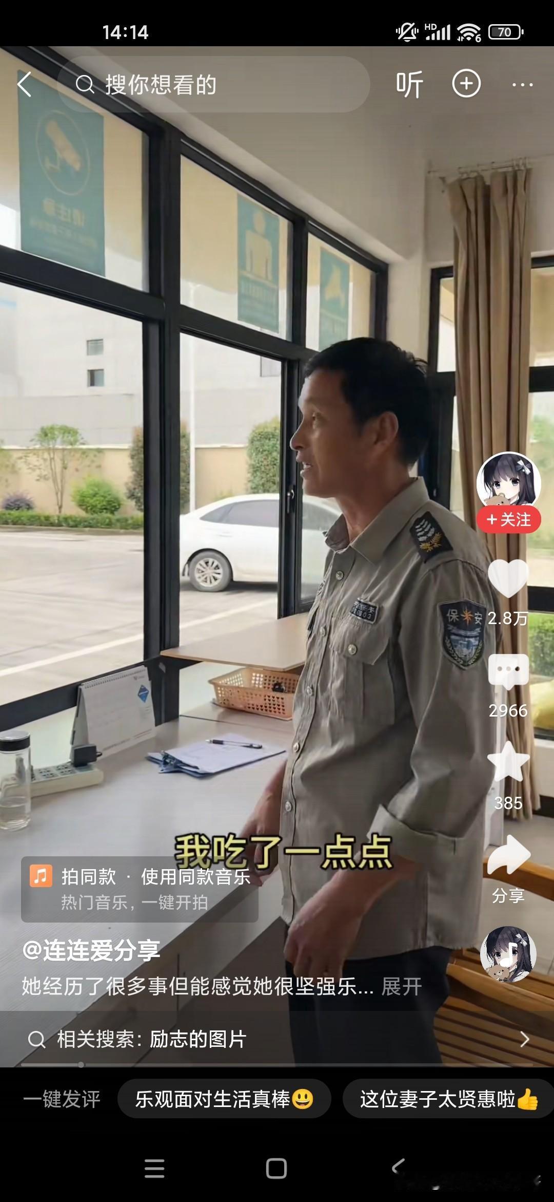 现在这么有情有义有恩的夫妻已经很少见了,她丈夫因为在建筑施工的时候从高楼上摔了下来,就进入了芜湖人民医院,当时因为没有医保,就自费花了20多万,把整个家底儿都掏空了,他们又没有孩子,没有办法,妻子只能去工厂里打工,养活老公,她老公现在的话腿已经完全麻木了,没有知觉,只能是慢慢静养,他妻子去餐厅里吃饭的时候,每次只吃一点点,剩下的留给她丈夫,当时保安还感觉很奇怪,因为工厂里边有规定不允许带饭回家,当时就问他是怎么回事儿,他说家里他男人特殊情况,希望把饭带回家,他回去做饭的话,有时候时间也来不及,然后的话就这样一次又一次带饭回家,后来他领导来视察,保安的话就向这个领导说明了情况,领导看了之后眼睛都湿润了,然后决定带他的线长去他家实地考察一下,才发现这种情况是真的,他当时就转给了她卧病在床的丈夫1000块钱买些营养品,自己也带了一些水果和棉被啥之类的,说他有什么困难的话,可以及时向行政领导汇报,工厂会尽他们所能帮助这位员工,当时这个女员工感动的就要哭了,就没有想到厂里领导会这么关心员工,这其实形成了一个非常温暖的这个案例,其他人看到我们的厂长对我们这么有情有义,他们只会拼命卖力去干活来回报这个工厂!