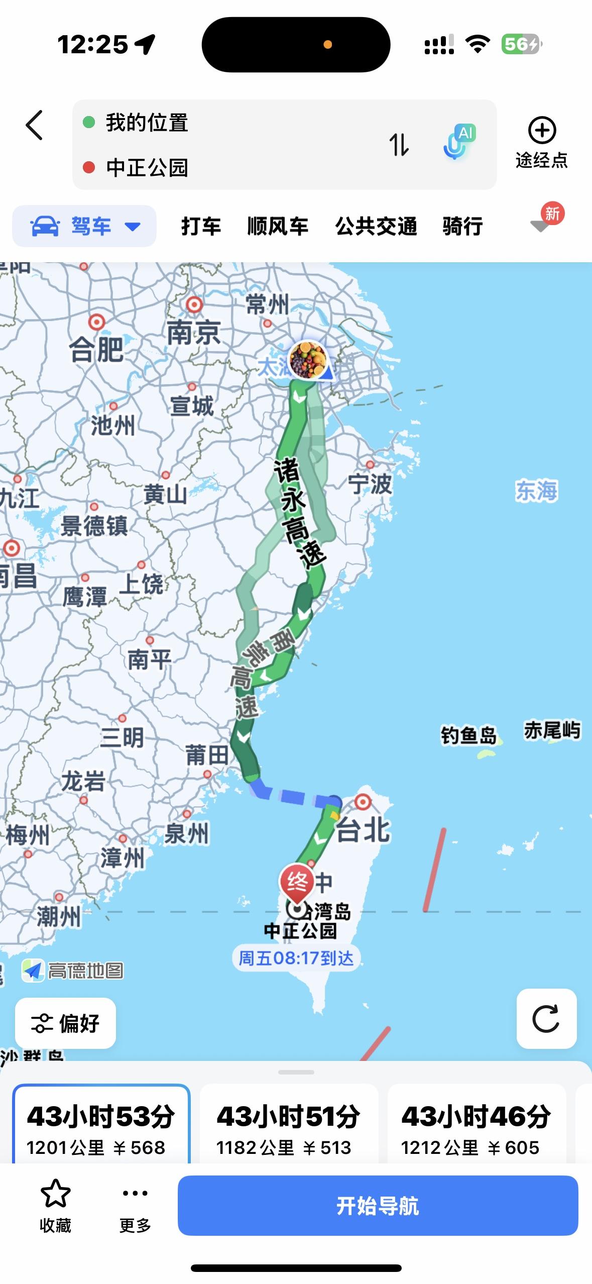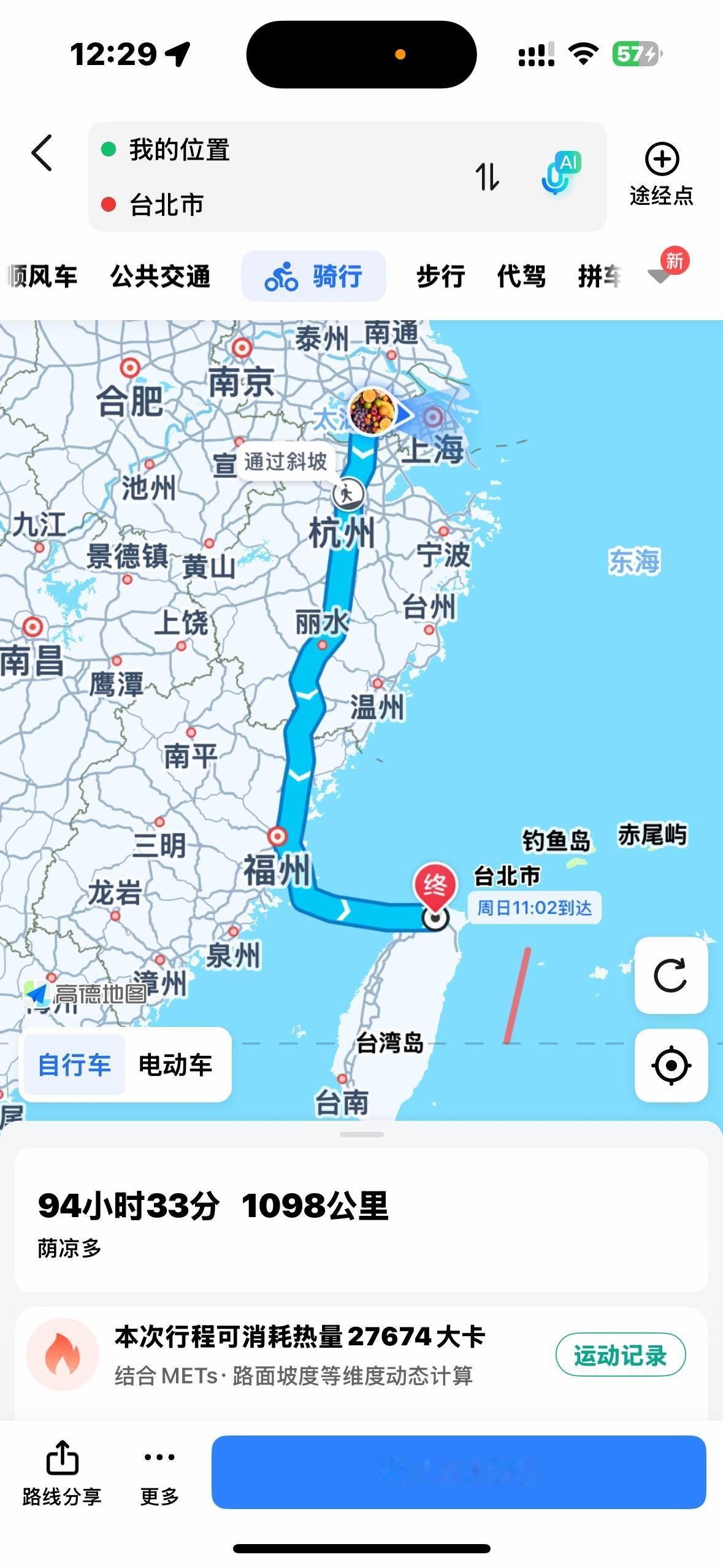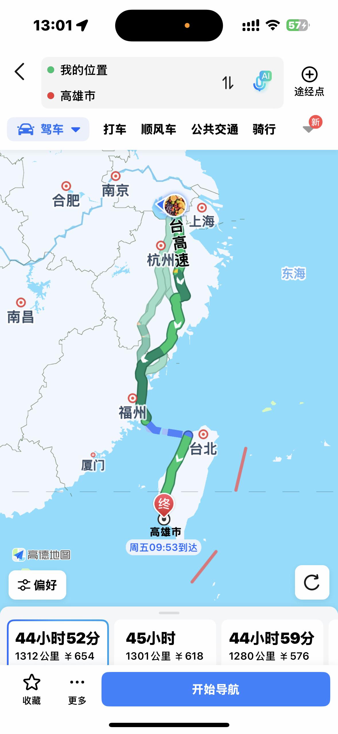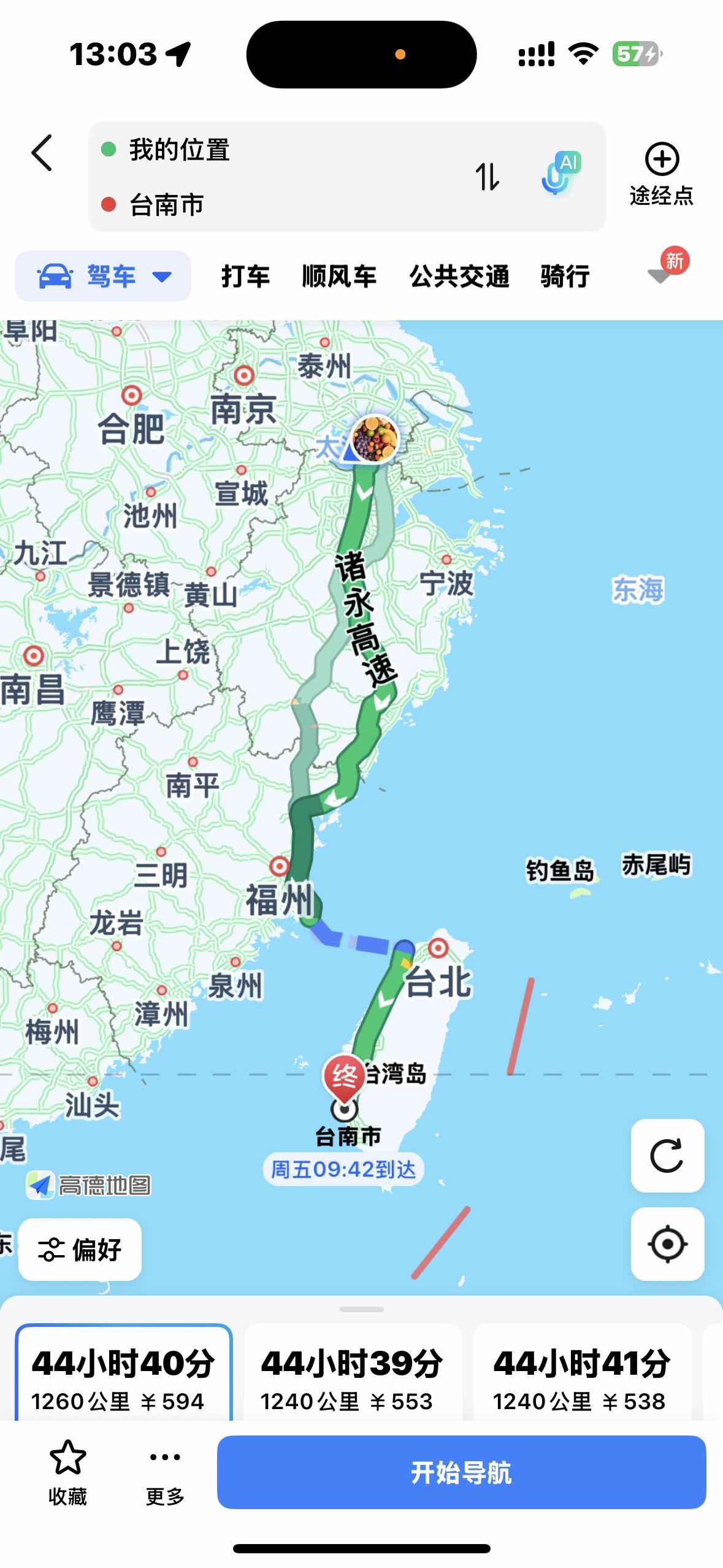 高德地图拉近大陆和台湾省的距离 高德地图在台湾省实现全域覆盖与精准服务,以技术之力搭建起两岸沟通的务实桥梁,显著拉近了地理与心理距离。 作为大陆数字科技成果惠及两岸的典型体现,高德地图凭借北斗系统支撑的厘米级定位精度,将成熟的导航服务体系延伸至台湾街巷,从车道级指引到实时路况更新,实现了与大陆城市的体验无缝衔接。其清晰标注的台北南京东路、高雄辽宁街等以大陆城市命名的道路,在地图上交织成独特的地理联结,让“两岸一家亲”有了一种新的体验感。 更具深意的是,用户可直接规划跨海峡路线,地图中预留的台海跨海通道标识,既彰显了技术前瞻性,更传递出两岸融合的必然趋势。这种以民生服务为切口的技术互通,让两岸联结从理念变为可感的日常,成为消融隔阂、凝聚人心的生动现实。 下面是我在家里用高德地图搜索的去台湾各地的导航线路截屏。(包括自驾、骑行)