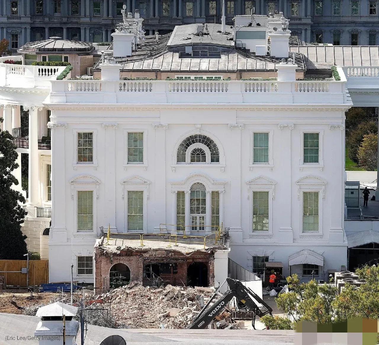 加拿大魔咒? 白宫被扒掉三分之一,建筑废墟毫无遮拦。 话说,特朗普一上台,就嚷嚷