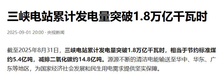 三峡大坝“账本”曝光:运行了20余年,2500亿投入如今回本了吗? 三峡大坝的2500亿投入早就回本了,而且这笔账算下来,收益比当初预想的还要多得多。 当初计划投入2500亿,实际执行中因为电站提前发电赚钱,最后花了不到2100亿,光这一点就已经省了不少。 国家审计署2013年的公告显示,当时工程总投资是2078.73亿元,后续就算加上少量维护和移民配套支出,也远没到计划的2500亿,毕竟2003年首批机组就提前两年并网发电,源源不断的电费成了“造血机”,直接对冲了后续建设开支。 而这笔钱主要花在三方面,大坝本身的混凝土浇筑、113万库区移民的安置,还有2250万千瓦装机容量的发电机组,每一分都花在了实处,没有虚耗。 最直观的回本来源就是发电,三峡电站是世界最大的水电站,截至2025年8月,这二十多年累计发的电已经突破1.8万亿千瓦时,要是按家里电表算,就是1.8万亿度电。 别小看这个数字,按全国工业用电和居民用电的平均价格算,每度电大概0.25元,1.8万亿度就是4500亿元,这已经是当初投入的两倍多。 而且这还没算上清洁能源的隐性收益,这些电相当于节约了5.4亿吨标准煤,要是靠烧煤发电,得建多少座火电站,花多少采购煤炭的钱,更别说减少了14.8亿吨二氧化碳排放,这可是省了一大笔环保治理的开销。 现在三峡还和乌东德、白鹤滩等电站组成了世界最大的清洁能源走廊,2024年上半年这条走廊就比去年多发电60亿千瓦时,相当于多赚了15亿元,这种持续“造血”的能力可比一次性投资划算多了。 要是只算发电的账就太浅了,三峡这笔买卖的精髓还在那些看不见的保障上。 就说防洪这个“安全闸”,长江中下游以前每到汛期就提心吊胆,1998年特大洪水的损失至今让人印象深刻,而三峡建成后,直接把防洪标准从十年一遇拉到了百年一遇。 建库以来累计拦洪近70次,光2024年汛期,和其他水库联合调度就拦了282亿立方米洪水,直接让中下游洪峰水位降低了0.4到3.1米,减少灾害损失654.6亿元,避免了226.8万人转移,减淹了329.1万亩耕地。就拿2024年湖南华容团洲垸出现险情那次来说,紧急调度三峡减流出库流量后,城陵矶水位提前一天退出警戒,直接降低了下游堤防的防守压力,这种“救命钱”根本没法用常规收益衡量,单是避免一次特大洪水的救灾和重建费用,就可能比整个工程投入还多,更别说保住的生命财产了。 还有航运这条“黄金道”,以前的川江航道全是急流险滩,“自古川江不夜航”可不是夸张,重庆到上海每吨货物的运费高达120元,万吨级船队想上去根本不可能。 三峡建成后,水位抬升淹没了险滩,航道水深稳定在4.5米以上,万吨轮现在能直接从上海开到重庆,运费一下降到40元以下,成本直接砍了三分之二。 截至2025年3月,三峡船闸累计过闸货运量已经超22亿吨,2023年一年就运了1.72亿吨,2024年上半年光物流成本就省了150亿,一年下来差不多240亿。 这可不是简单省点运费,西部的矿产、农产品能低成本运到东部,东部的工业产品能顺畅西进,沿线港口吞吐量翻倍增长,整个长江经济带被彻底盘活了,这种带动的产业链价值,早就远远超过大坝本身的投入。 还有113万库区移民的安置,这笔钱也不是白花的。当初可不是简单盖几栋房子,而是配套了柑橘种植、生态养殖等产业,现在库区人均年收入比搬迁前涨了近10倍,从不足千元涨到了近万元。 以前的移民变成了特色产业的从业者,库区的柑橘、生态鱼成了网红产品,乡村旅游也火了起来,这笔投入不仅解决了搬迁问题,还培育了新的经济增长点,把“负担”变成了发展动能。 别说水资源利用的效益,累计为长江中下游补水3600亿立方米,保障了沿线人饮和灌溉用水安全,2024年干旱时提前蓄水,还保障了冬春的供水需求,这都是实实在在的民生保障。 算下来,当初不到2100亿的投入,光发电就赚了4500亿,防洪十几年累计减损几千亿,航运每年省两百多亿物流成本,还带动了移民致富和区域发展,这些收益加起来,早就把本钱翻了好几番。 而且三峡还在不断创造新价值,2024年通过优化调度,上游水库群还多发电170亿千瓦时,生态调度让荆江河段四大家鱼繁殖恢复到80年代水平,库区森林覆盖率超过50%,水质稳定在Ⅱ类。 这哪是建了个大坝,分明是建了个持续生钱的“聚宝盆”,还是个守护安全的“定海神针”,这笔账怎么算都划算。