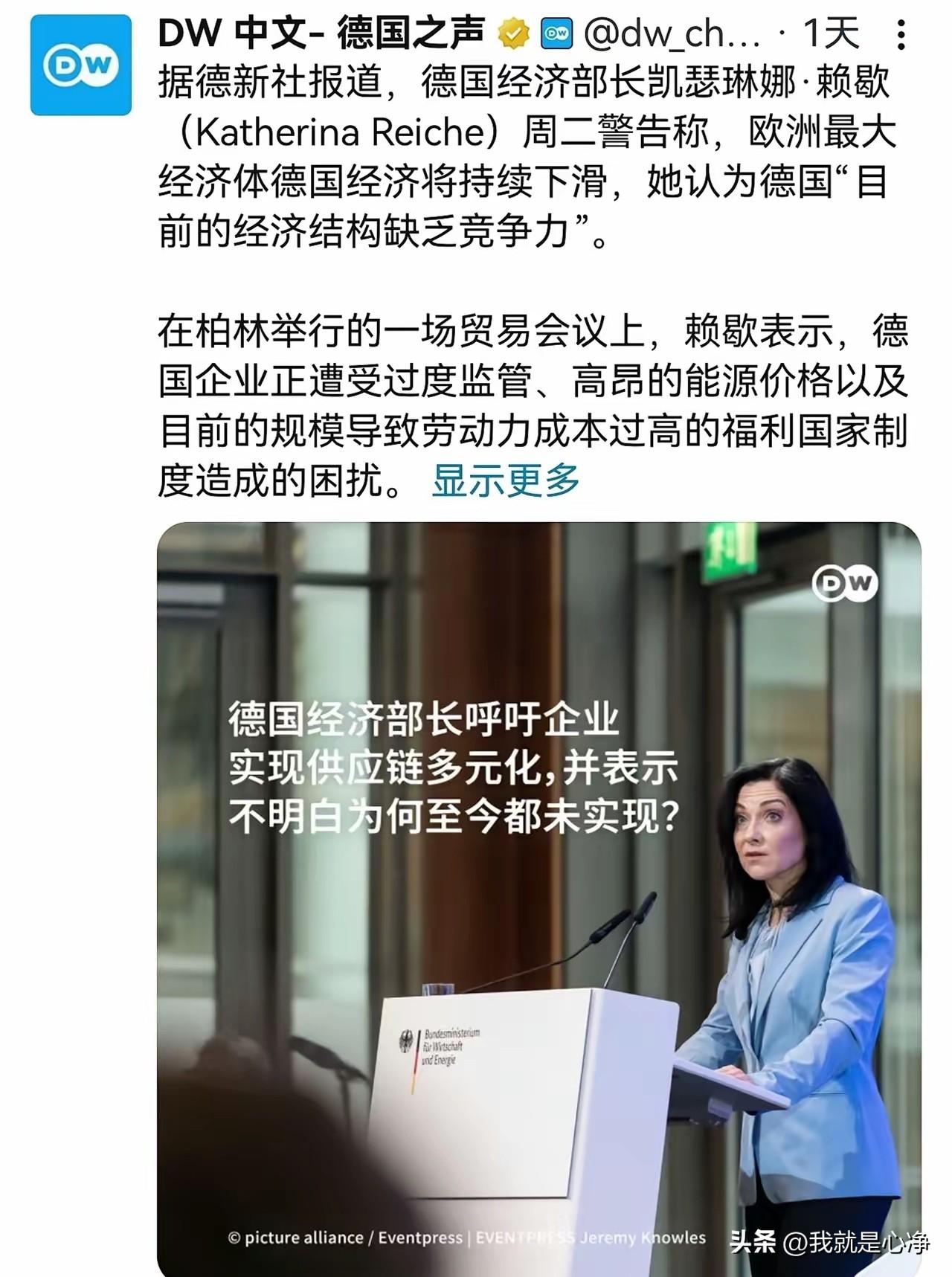 想要毁掉一个民族很简单,只要你搞一群只懂政治正确的小女生,当政客就可以了。 不要选默克尔或者撒切尔夫人那样的女生。 那种属于是比男人都更加理性。 惹不起的,惹不起的。 你得选新闻中这种,脑回路比较曲折的不可思议的。 一定要感性大于理性。 一定要让我认为我感觉压过实事求是。 好了,只要你弄一批这样的人上台。 这个民族立刻完蛋。 再看看德国经济部长凯琳娜说的话。 这还是人话吗? 如果你是个艺术部,体育部,卫生部的部长。 你说两句外行话还行,你可是经济部的部长啊。 搞经济这个东西,尤其是制造业要的就是实事求是。 生产链你有就是有没有就是没有。 电力你变不出来就是变不出来。 稀土你没有,它就是没有。 他不是你小女生,撒个娇就能搞到手的。 那种话都能说得出来,台下那些德国企业家们要怎么看待你呢? 你这些在台上高高在上的政客们应该给德国人解释解释。 为了所谓的环保政治正确,你把德国人的核能全部废掉了,燃煤发电站也都给废掉了。 德国人现在连电力供应都不够。 还幻想什么产业链吗? 不购买怎么办? 咱们真的应该鼓鼓掌了,希望西方出现越来越多这种政治正确的女性政客。 大利好啊,对咱们真的是大利好。