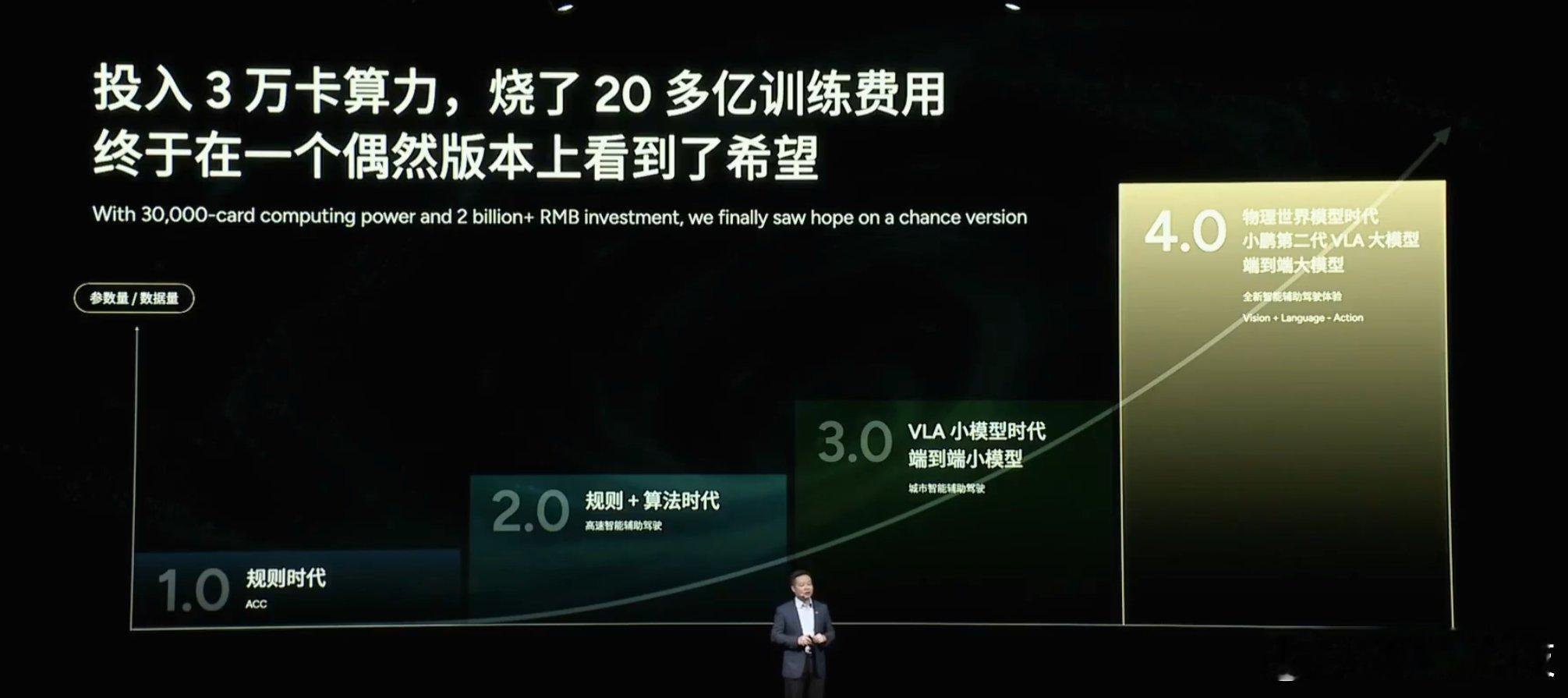 小鹏科技日2025 小鹏科技日以「涌现Emergence」为题。投入3万卡算力,20多亿训练经费,终于看到了希望-小鹏第二代VLA来了。 何小鹏首次披露物理AI巨大进展