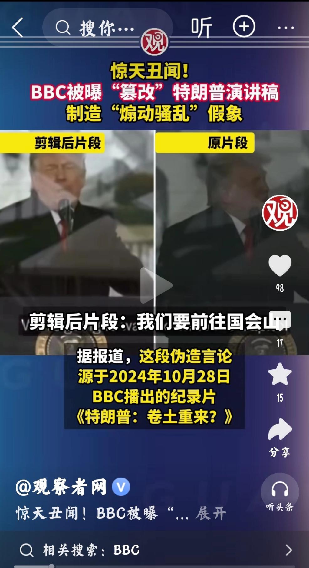 西方主流媒体:虚假 个人观点:这就是谷歌,这就是BBC,这就是西方主流媒体,这就是他们所说的新闻自由,原来都是虚假的,选择性的。 现在谷歌封禁巴勒斯坦人权组织账号;BBC爆发惊天丑闻,篡改特朗普演讲,制造煽动骚乱假象。 原来西方媒体信誉都是沙子创造的。
