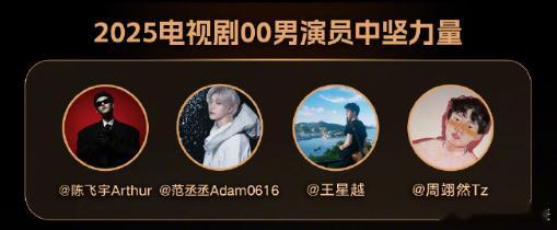 00后新晋四小生 陈飞宇、范丞丞、王星越、周翊然获评2025电视剧00男演员中坚力量,新的00后四小生,你喜欢看谁的作品?