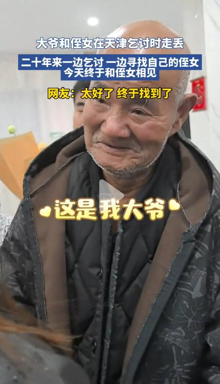 失散20 年,这位大爷终于和侄女重逢! 事情起因是,20年前张大爷带着侄女来到天津乞讨,却在一天因大爷独自前去买馒头而走散。那天之后大爷就一个人踏上了寻找侄女的旅程。他将侄女唯一一张一寸照带上,每到一个地方就去打印店冲洗张贴。这一找,就是20年。 直到上个月,侄女在志愿者帮助下查到线索,见到大爷时,他怀里还揣着当年侄女穿破的小布衫。俩人一见面没说话先哭,这场景看的人鼻子发酸 —— 啥都隔不断血缘,只要不放弃,总有重逢的一天! 大爷和侄女乞讨走丢20年后团聚 亲情