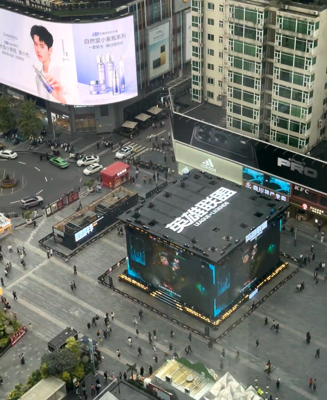 这个英雄联盟的场子也太豪横了…从来没见哪个活动在春熙路开了这么大场地。。。已经想到9号春熙路路况会有多崩溃了。