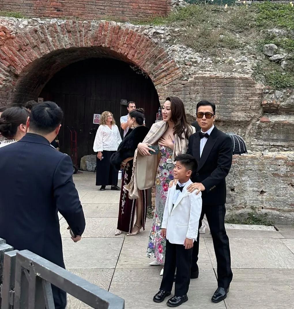 甄子丹夫妇意大利出席好友婚礼,相差18岁仍般配,汪诗诗碎花裙尽显好身材 62岁的甄子丹与妻子汪诗诗现身意大利,受邀参加朋友婚礼。两人虽年龄相差18岁,但同框时依旧十分般配。 汪诗诗身着一袭碎花长裙,优雅又浪漫,姣好身材尽显无疑,在意大利古老建筑的映衬下,美得格外亮眼。甄子丹则以黑色西装搭配领结,绅士范儿十足,夫妻俩同框画面十分吸睛。 从现场照片可以看到,他们或在古罗马风格的遗址前甜蜜合影,或与新人温馨同框,还带着孩子一同出席,画面满是幸福气息。在这场充满异域风情的婚礼中,甄子丹夫妇的亮相无疑成为了一道靓丽的风景线,也让大家再次感受到他们之间浓浓的爱意与默契。
