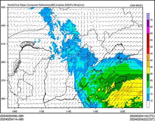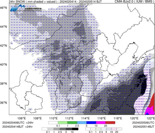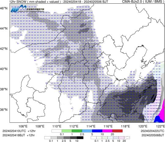 目前我省境内的降雪回波正在持续发展,向东的分量正在加大,预计今天夜间到明天凌晨鲁中东部和半岛地区将进入降雪的最强阶段。根据北京模式数值预报的最新预测,今天夜间到明天白天鲁南大部、鲁中东部和半岛地区将有中到大雪,潍坊、青岛、日照、烟台南部、威海的部分地区还将有暴雪或大到暴雪,6小时积雪量将达到4~8毫米对应积雪深度为5~10厘米。总的来说,本轮降雪强度基本呈现东南多、西北少的分布格局,鲁东南、鲁中东部和半岛地区强度最大。