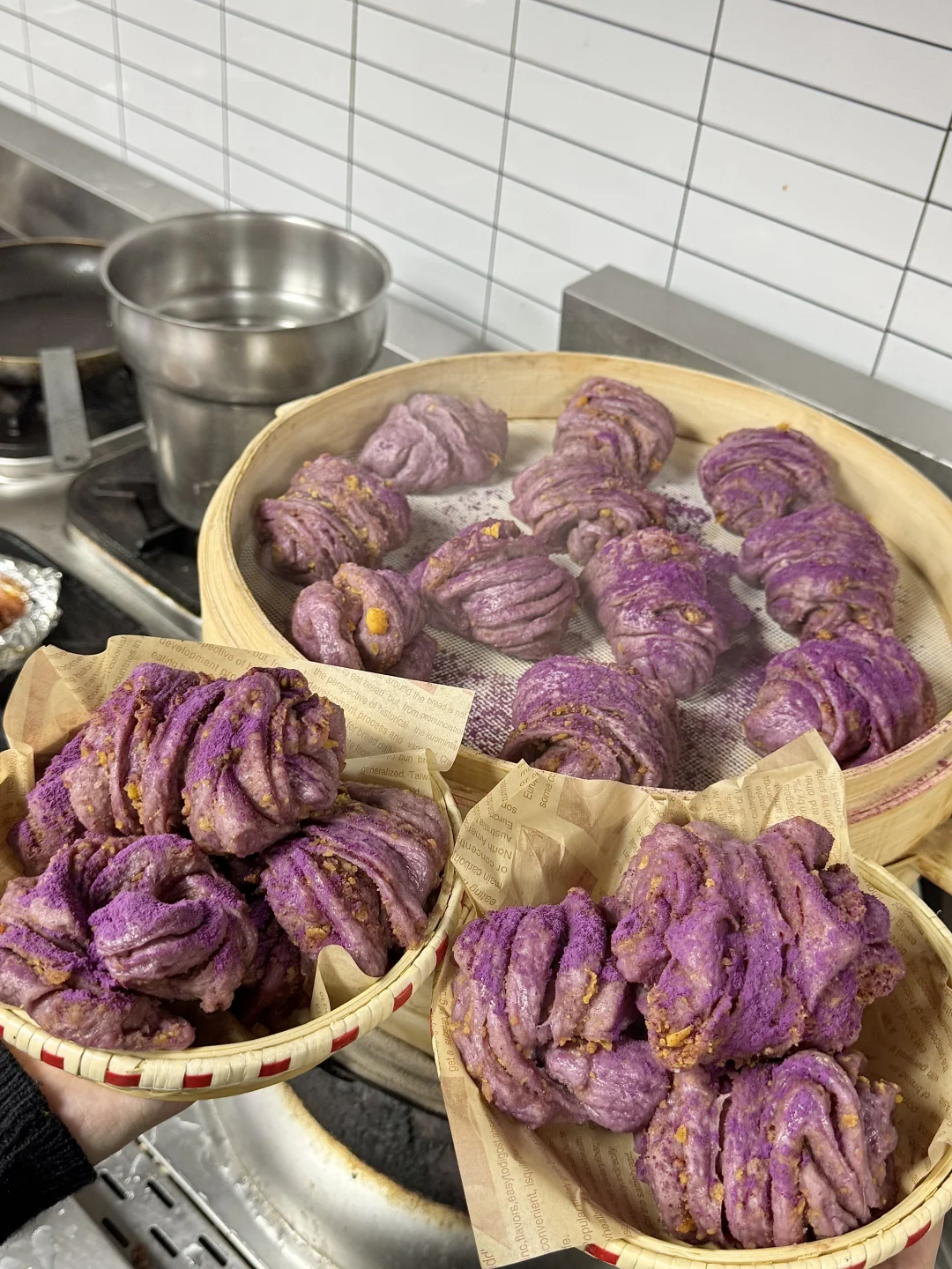 现做的芋泥花卷好好吃!!!热乎乎出锅.软fufu!中间有玉米、咸蛋黄太香了[色色R][色色R]火锅也好吃滴很!!