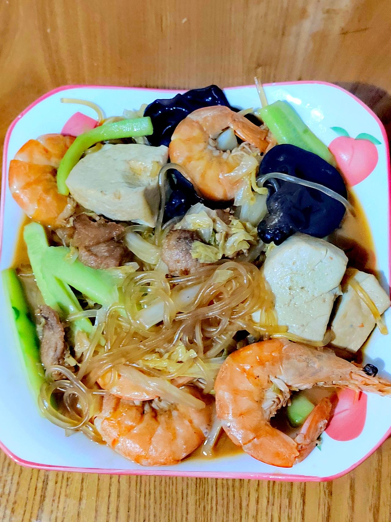 昨天难得一个大青天。 早饭还是老样子:稀饭、馒头,鸡蛋、羊奶。 突然想起来家里好长时间没有吃豆腐了,于是上午便去菜市场买了4块钱的豆腐,3.5元一斤。 晚饭做了白菜豆腐炖大虾,配料:粉条、木耳,黄瓜条。 都说韭菜黄瓜两头鲜,做菜无论是炒还是炖,出锅时放上点黄瓜片,味道会各外的清爽。 烟火人间,一日三餐,在平淡的日子里寻找快乐。