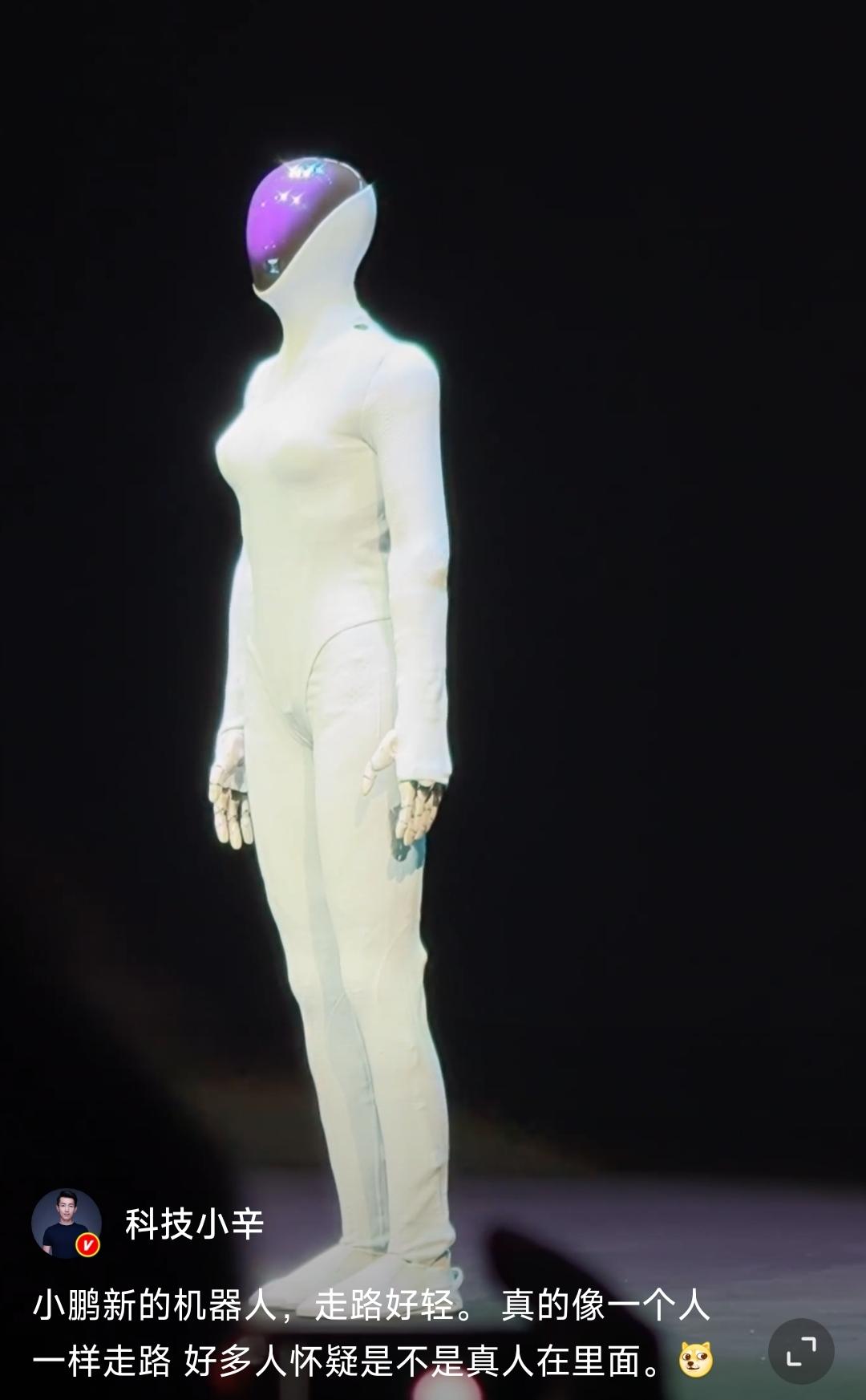 小鹏发布会 这个机器人炸锅了,网上铺天盖地都在讨论 里边是不是套了个真人? 我只能说何小鹏太牛了 如果这是真正的机器人 那么就光凭这个走路的姿态,小鹏这家公司,真的已经走在了科技的前沿,在拟人态这方面遥遥领先,非常厉害 这里边不是真的机器人 是真人套了层衣服,那么光凭这个胆量,小鹏这家公司 已经走在了时代前沿,相当厉害了