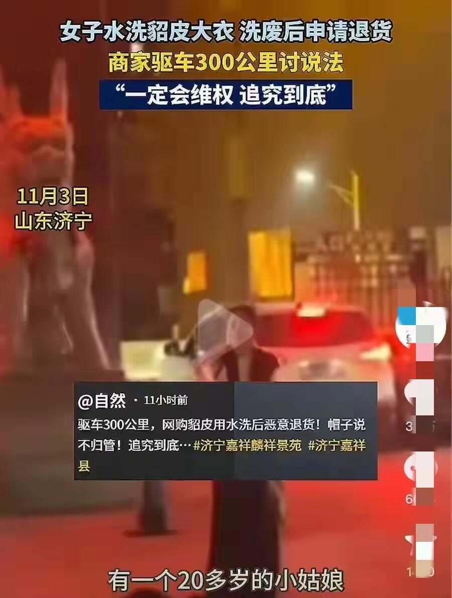 这事儿可真够气人的——山东有个网店店主王女士,卖出去一件1888元的特价水貂大衣。结果买家穿了好几天,居然把衣服水洗后申请退货。要知道貂皮最怕水,一洗就废,摸起来又硬又糙,内衬还留着洗衣粉的印子。 王女士收到退货都懵了,赶紧拍视频留证据,向平台申诉。可平台居然判买家赢,直接退款了。她打电话联系买家,对方一直不接。王女士一气之下开车三百公里找上门,还报了警。 更离谱的是,买家躲在屋里说“要奶孩子出不去”,警察也劝王女士体谅。她实在没办法,掏出喇叭在小区里喊人。视频传到网上后火了,却很快被买家举报下架。 要我说,这种买家就是钻平台规则空子。穿几天拍完照,洗坏了再退货,明摆着是欺负卖家。平台也是和稀泥,只看流程不看对错,反正亏的不是他们的钱。 王女士这波确实亏大了——一件特价大衣本来赚不了多少,现在倒贴油费时间,还生一肚子气。但她这么较真我挺佩服的。现在网上买卖都靠诚信撑着,要是谁都这么搞,以后谁还敢好好做生意? 这事儿最让人憋屈的是,守规矩的人反而吃亏。买家耍小聪明得逞,平台各打五十大板,只剩下老实人自己折腾。王女士坚持维权不只是为一件衣服,更是为争口气。要是人人都对这种事睁只眼闭只眼,那占便宜的人只会越来越嚣张。 希望王女士能维权成功,也让那些爱钻空子的人知道:不是所有亏都得咽下去,这世上总有人较真到底。