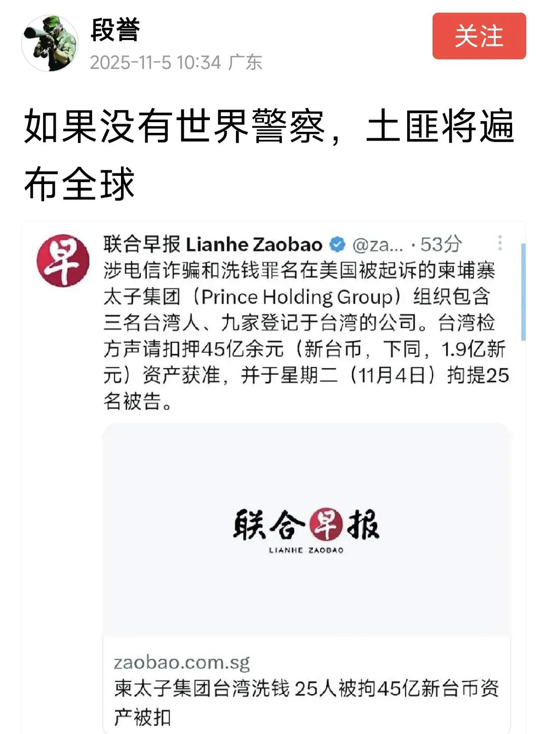 有人说,如果没有世界警察,土匪将遍布全球。 也有人说,我们需要的是正义的世界警察。 这是他们对美国这个世界警察作用的不同看法。 但我认为,世界不需要单极世界,我们需要的是多极世界。美国这个世界警察为了自己的霸权利益,做坏事太多,不是个好鸟。 彭博社说,美国太空军部署三种新型武器通过遥控攻击中俄卫星。美国世界上最大的流氓国家,是什么坏事都干的出来的。有人说,如果没有世界警察,土匪将遍布全球。 也有人说,我们需要的是正义的世界警察。 这是他们对美国这个世界警察作用的不同看法。 但我认为,世界不需要单极世界,我们需要的是多极世界。美国这个世界警察为了自己的霸权利益,做坏事太多,不是个好鸟。 美国是世界和平的主要障碍,哪里有美国,哪里就有战争和冲突。 彭博社说,美国太空军部署三种新型武器通过遥控攻击中俄卫星。美国世界上最大的流氓国家,是什么坏事都干的出来的,甚至不择手段,铤而走险。 要知道,美国还是台湾统一的最大障碍,是破坏南海和平的主要的力量。 中国强大了,世界需要多极化,世界不需要美国这个不正义的、做坏事的世界警察了。“没有世界警察,土匪将遍布全球”是危言耸听,是过于跪舔美国了。 大家怎么看?