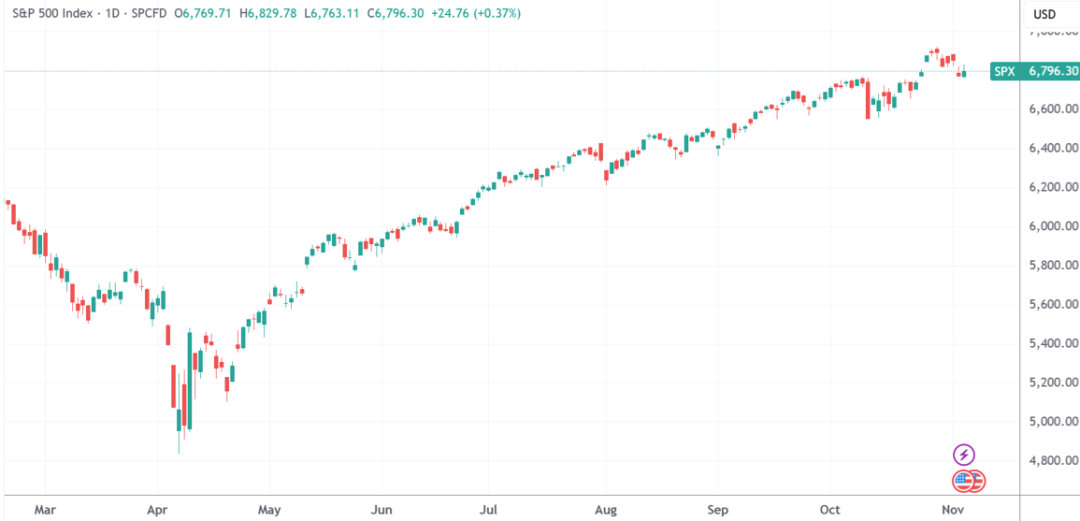 当然,周三也不是所有的AI概念股都出现反弹。发布财报后,超微电脑跌超11%,数据中心网络供应商Arista Networks跌近9%。在市场广度严重不足的当下,即便是AI概念股也开始内部分化。 标普500指数今年总共创出36次历史新高,最近一次是在10月28日。但涨势的广度极其狭窄,自2025年初以来,6只股票贡献了该指数约一半的涨幅。