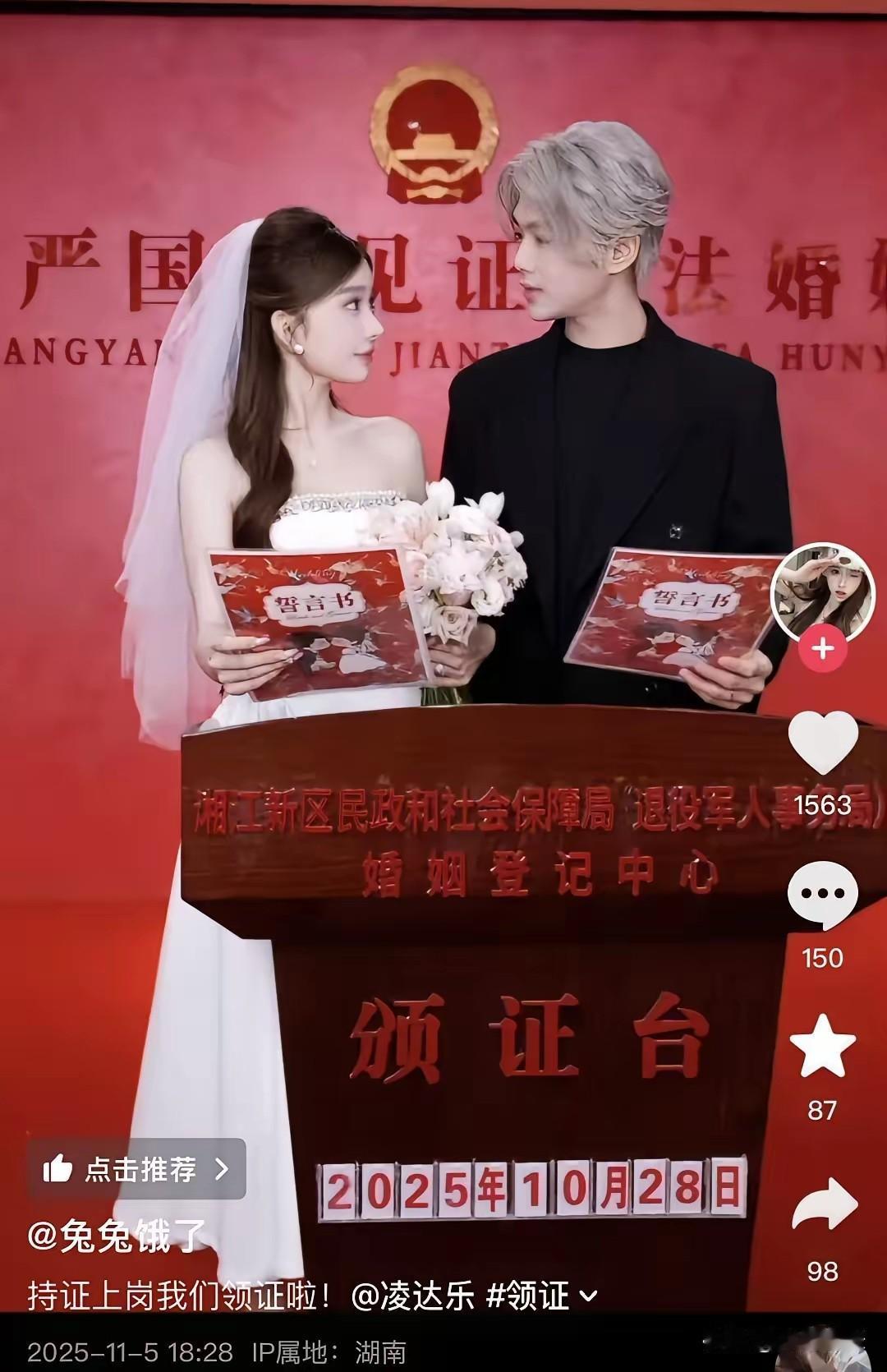 11月5日,网红鹿哈(现名凌达乐)在社交平台晒出领结婚证视频,配文超深情,说是深思熟虑的一辈子。鹿哈曾是主播组合“ESO”成员,这组合里还有“王二博”“易烊干洗”“黄子诚”等,模仿EXO、TFBOYS等组合艺人。 “ESO”在短视频平台热度高、梗多,可负面评价也一堆,像什么土味偶像、山寨明星、拼夕夕男团,还被指无底线蹭热度。鹿哈估计是被骂怕了,才改名叫凌达乐。不过话说回来,不管名字咋变,日子还是要好好过,希望他婚后能幸福吧。