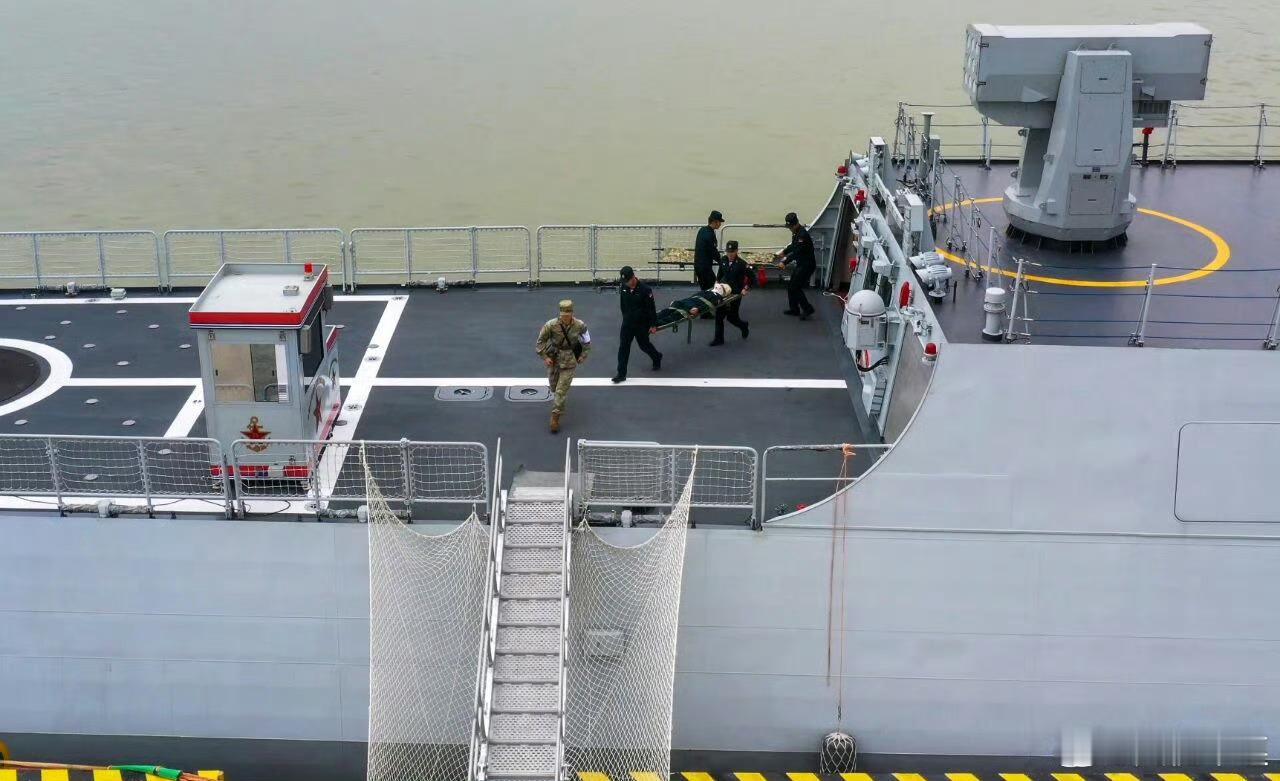 实战化后装综合保障演练,以母港遭“敌”突袭为背景: