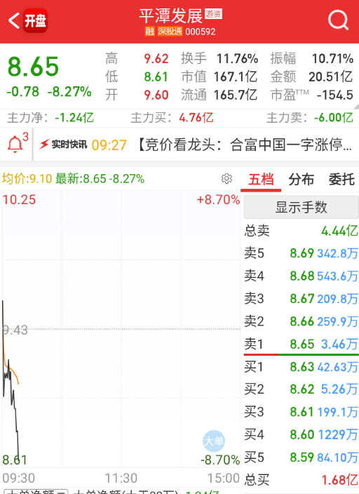 $平潭发展 sz000592$ 盘面放量,越好,这个分歧就会越大。