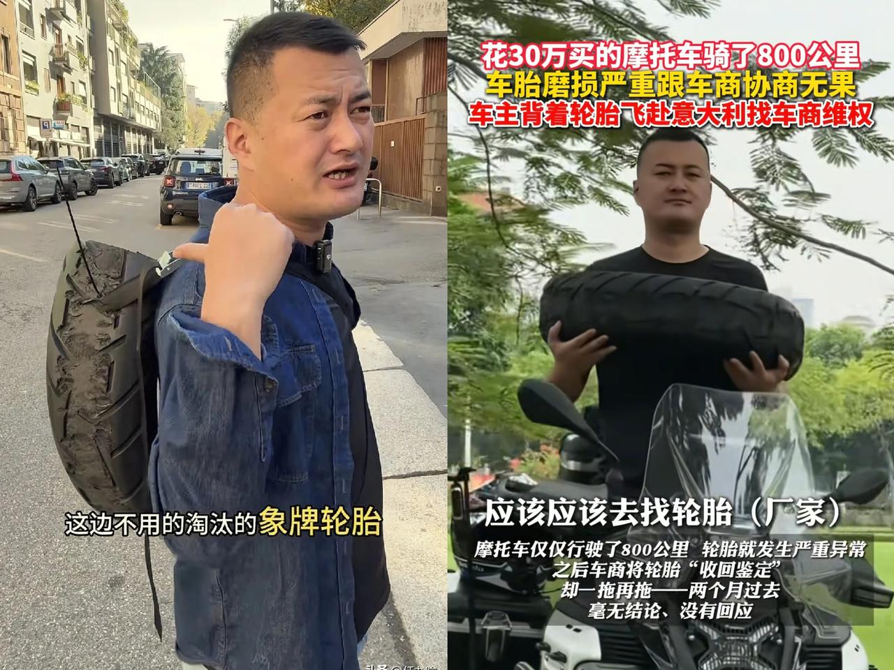 花30万买的宝马摩托车, 刚骑800公里轮胎就磨得没法用,换谁能忍? 广东博主吴老臭的遭遇,戳穿了某些大牌的双标嘴脸——国外同款装更好的米其林轮胎,国内却清一色用在美国出过问题早被召回的象牌胎! 找4S店,对方一句“易损件不质保”就想打发; 找消协,流程复杂没下文; 联系宝马中国,直接石沉大海。 换旁人可能认栽,但他偏带着半条轮胎飞米兰,硬生生在国际摩托展上把事闹大。 最终宝马中国乖乖报销费用、上门换米其林胎,这结果明明白白告诉我们:不是消费者太较真,是品牌的傲慢只怕“闹大”。 这种现象太正常了,国内用好的,出口中国就用差的代替! 难道中国人就是人傻钱多,好骗?? 支持这位博主的做法!就应该维护自己的权益!!!米其林宝马轮胎 消费权益帮忙