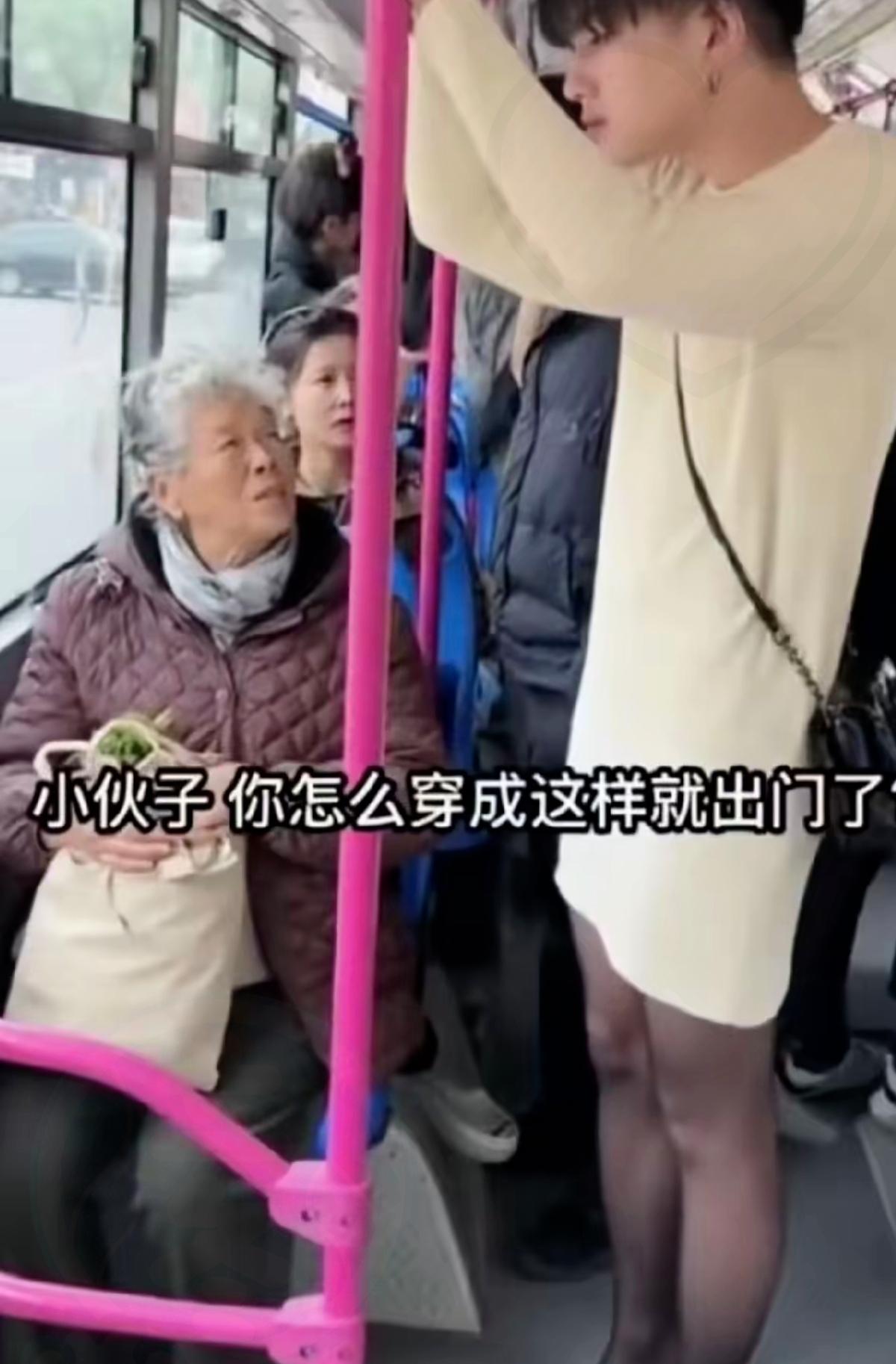 公交车上这小伙子的穿搭,直接让大妈的表情管理当场“宕机”! 大胆的配色、打破常规的单品组合,视觉冲击力直接拉满,回头率简直是天花板级别。不得不说敢这么穿出门,确实需要莫大的勇气——毕竟在人来人往的公交上,这样的造型想不被议论都难。 有人觉得这是个性,是自我表达的自由;也有人觉得太夸张,公共场合还是得顾及他人感受。其实穿搭本就是个人选择,只要不影响他人、不违背公序良俗,多一点大胆和创意,反而能给平淡的生活添点乐趣。 真正的时尚,从来不是千篇一律的复制,而是敢于做自己的底气。这位小伙子用一套穿搭告诉我们:自信才是最好的“时尚单品”。 你在生活中见过哪些让人眼前一亮(或一言难尽)的穿搭?来评论区分享一下~