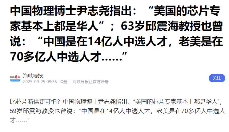 比芯片断供更可怕!中国物理博士尹志尧公开指出:“在半导体领域我们和欧美国家的差距,虽然至少是三代的技术,但这样的劣势只需要花5-10年的时间来挽回。”而他如此自信的原因也在于“人才”上,他表示:“中国人足够优秀,美国巨头公司的技术骨干、芯片专家基本上都是华人!” 台积电如今3纳米工艺都已经稳定量产,2纳米的试产线都搭好了架子,苹果的A17 Pro芯片、英伟达的H100 AI加速器全靠它代工,一片3纳米晶圆能卖到3000多美元,相当于一部高端手机的价格。 咱们大陆的中芯国际,目前能稳定量产的最先进工艺还是14纳米,连高端手机芯片、AI 加速器的基本性能与能效需求都满足不了,在台积电3纳米垄断的高端代工市场里完全排不上号。 光看数字不够,得扒开工艺细节看门道,台积电的3纳米用的是GAA全环绕栅极技术,晶体管像根小柱子被电极团团围住,电流控制得更精准,相比上一代5纳米,功耗直接降了30%,逻辑密度提升75%,打个比方就是同样大小的芯片里,能塞下更多“工人”还更省电。 台积电的3纳米良率已经做到80%,相当于造10片晶圆能成8片,而三星同代工艺良率才20%,咱们的14纳米良率虽然稳定在90%以上,但技术代差摆在这,根本没法在高端市场抗衡。 要知道,半导体技术代差绝非单纯的制程数字差异,而是涵盖晶体管结构、核心设备、性能能效、产业链协同的全方位代际鸿沟。 这差距的根子首先卡在设备上,核心就是EUV光刻机这台“工业机床中的爱马仕”。荷兰ASML的EUV光刻机里装着10万多个零部件,全球就它能造,而且只卖给台积电、三星这些“自己人”,中芯国际就算揣着钱也买不到。 没有EUV,想做7纳米以下工艺只能用DUV光刻机搞多重曝光,就像用普通相机拍夜景,得拍好几张叠在一起才清楚,不仅成本飙升,良率还上不去。 ASML的EUV一台卖1.2亿美元,就算能买到,维护还得靠人家的工程师,等于卡脖子的绳子攥在别人手里。 这台机器里美国只占20%的专利,却靠着《瓦森纳协定》拉着40多个国家搞技术封锁,不让关键技术流向咱们,等于用政治手段把技术差距焊死了。 制造环节的差距还体现在产业链协同上。台积电的7纳米工艺早在2018年就量产了,截至2021年出货量突破10亿大关,堆起来能覆盖十多个曼哈顿街区,适配了150多种产品,从5G手机到数据中心服务器无所不包。 中芯国际的14纳米直到2019年才量产,到现在营收里14/28纳米工艺占比还不到20%,大部分收入靠55/65纳米这些成熟工艺撑着,高端市场里连喝汤都轮不上。 这就形成了恶性循环:台积电靠高端工艺赚大钱,一年研发投入能砸60亿美元,越赚越投越领先;中芯国际高端业务没收入,研发投入只有十几亿美元,追赶起来自然吃力。 材料和软件这些“隐形门槛”更要命。造高端芯片得用极紫外光刻胶,这种材料涂在硅片上,经EUV照射后能形成精细电路,全球90%的市场被日本JSR、信越化学垄断,国内南大光电的产品还在客户验证阶段,没个两三年出不来。还有电子特气、大硅片这些基础材料,高端品类的国产化率都不到10%。 软件方面更头疼,设计3纳米芯片得用Synopsys、Cadence的EDA工具,这俩美国公司垄断了全球95%的高端EDA市场,国内华大九天的工具只能覆盖中低端,想设计高端芯片根本没法上手。 不过尹志尧说的人才优势确实没掺水。美国英特尔、高通这些巨头的技术骨干里,华人工程师占了大半,比如台积电的3纳米研发团队里就有不少华人专家,他们掌握着从晶体管设计到晶圆制造的核心技术。 但问题在于,这些技术专利和产业链话语权攥在欧美企业手里,就算人才想回来,没有EUV光刻机、没有高端材料,也很难施展拳脚。 现在的情况是,台积电靠着3纳米工艺把高端芯片的利润吃透了,苹果、英伟达排队送订单,一片晶圆赚的钱比中芯国际一片14纳米晶圆的成本还高。 咱们的手机厂商、AI企业想要高端芯片,只能乖乖给台积电送钱,还得看人家产能脸色。 但反过来看,咱们的成熟工艺已经站稳脚跟,55/65纳米工艺占全球市场份额不低,而且有大量华人人才储备,只要能突破 EUV 设备、高端材料这些卡脖子环节,把技术转化成产能,尹志尧说的5-10年追上三代差距,还真不是空谈。 毕竟半导体行业从来都是逆水行舟,当年日本能超越美国,现在咱们有人才有市场,未必不能复制这样的逆袭。