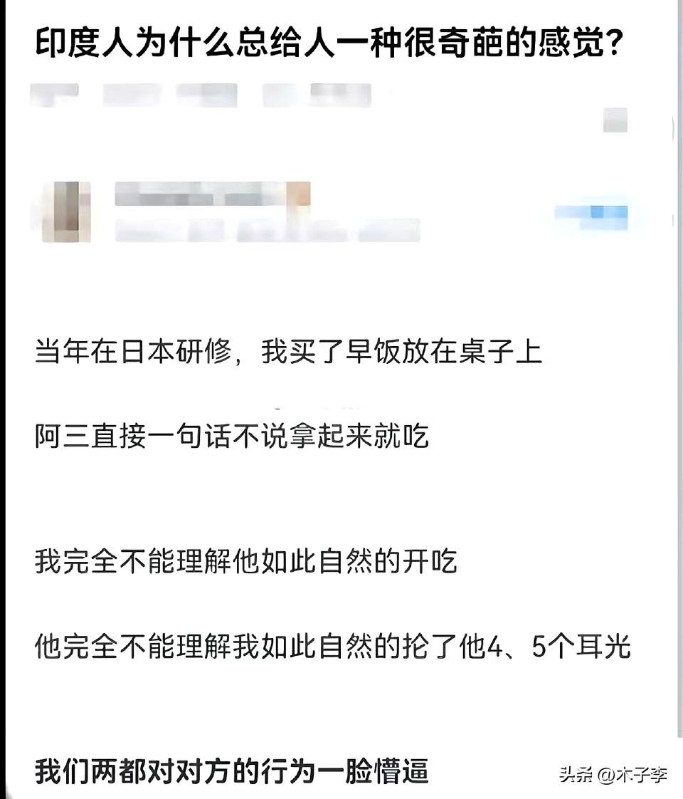 印度人信奉‘因明论’,即‘只要我想的就是真实的’。[允悲]关于阿三畏威而不怀德这方面,同学有个欧洲留学过的哥们,他也有个印度同学,天天拿一把珠光宝气小刀在他面前比划,各种现。然后那哥们从小练武的,有天就把他刀夺了揍了一顿,然后就立马老实了,用我哥们的话说就是,“成了朋友”[笑哭]。印度精神疗法