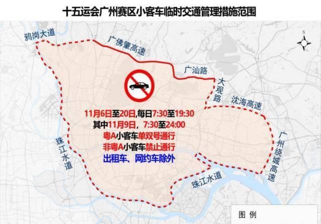 【十五运会地铁公交出行指引】广州小客车单双号限行激情全运会活力大湾区 据广州交警、广州公交集团和广州地铁消息,11月6日起,十五运会和残特奥会临时交通管理措施正式施行、专用车道正式启用,广州公交、地铁有调整。 小客车限行规则 广州籍小客车(粤A):按车牌(含临时号牌)最后一位阿拉伯数字(如车牌最后一位为字母,则按字母前最后一位数字确定)实行“单号单日、双号双日”通行(即车牌最后一位数字为1、3、5、7、9的单号车辆在单日通行,车牌最后一位数字为2、4、6、8、0的双号车辆在双号通行)。限行时间:11月6日—20日、12月5日—14日每日7:30—19:30(11月9日、12月8日开幕式限行结束时间延长至24时)。 非广州籍小客车:在限行道路和限行时间内禁止通行,同时暂停外地小客车工作日高峰通行预约登记。 9日广州地铁4号线、21号线部分站“飞站” 为保障第十五届全国运动会开幕式顺利举行,11月9日(星期日)开幕式当天,广州地铁四号线黄村站及二十一号线天河公园至苏元站全天停止对外服务;四号线车陂站22时前停止对外服务,22时后恢复往南沙客运港方向的运营服务。二十一号线天河公园、苏元站停止对外服务期间,因车站部分出入口通道、站厅、站台等区域将实施围蔽,十一、十三号线天河公园站及六号线苏元站无法换乘二十一号线。 开行地铁接驳专线 专线1:天府路(地铁天河公园站)⇌水西站 专线2:地铁车陂南站⇌车陂高架桥侧 运营时间:6:00—24:00,发班间隔约5分钟。