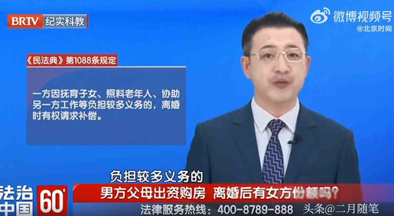 男方父母全款买婚房, 离婚时儿媳要分家产! 家务付出到底值不值钱? 最近有个离婚案吵翻了天! 小两口闹离婚, 为婚房争得不可开交—— 房子是男方父母全款买的, 写的是儿子名字。 但妻子不干了: "我婚后包揽所有家务, 物业水电费都是我交, 凭什么不能分?" 这事儿真让人纠结。 法律上说这房确实算男方个人财产, 可女方这些年洗衣做饭的付出就白费了? 现在年轻人离婚, 最怕这种"隐形付出"不被认可。 要我说啊, 婚姻里的家务劳动也该明码标价。 毕竟请个保姆还要开工资呢!你觉得家务劳动该不该获得经济补偿? 快来评论区聊聊! 婚姻财产真相 夫妻财产新划分 夫妻财产新划分