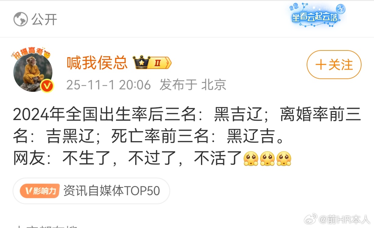 黑吉辽;离婚率前三名:吉黑辽;死亡率前三名:黑辽吉。网友:不生了,不过了,不活了