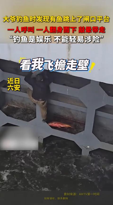 “简直赚翻了!”安徽六安,一大爷在水闸钓鱼时,突然看到一条大鱼跳上水闸平台,他兴奋的喊来朋友捞鱼,只见大爷顺着闸口缓缓爬下,将大鱼敲晕后抱了上来,身手异常的敏捷!网友:为了鱼连命都不要了? 据亳州晚报小黄橙11月5日报道,这事儿发生在六安的一个水闸边上,经常有喜欢钓鱼的人聚在那儿。 那天,一个大爷正跟往常一样守着鱼竿,突然听见“扑通”一声巨响,水花溅得老高,他扭头一看,好家伙,一条比他胳膊还粗的大青鱼,也不知道是抽了什么风,竟然一头撞上了水闸,还借着劲儿蹦到了水闸中间的一个水泥平台上。 这鱼个头巨大,在水泥地上活蹦乱跳,拼了命地想往水里蹦,这下可把周围钓鱼的人给看呆了,这哪是钓鱼啊,这是鱼送上门来了。 大爷立马激动地喊他旁边一个朋友,俩人看着那条在水泥台上挣扎的大鱼,眼睛都直了,这鱼少说也得有二三十斤,要是能弄上来,那可真是发了笔横财。 可问题是,那平台在水闸的正中间,离岸边有好几米远,上下都是陡峭的水泥斜坡,斜坡上还长满了滑溜溜的青苔。 这地方别说下去了,就是看一眼都腿软,怎么办?眼瞅着大鱼要是再蹦跶几下,可能就掉回水里了,这时候,一个更让人意想不到的画面出现了。 那个被喊来的大爷,二话不说,直接翻过了岸边的护栏,他手脚并用,像个壁虎一样,顺着近乎垂直的、布满青苔的水泥斜坡,一点一点地往下挪。 那斜坡看着就滑,万一脚下一滑,掉下去可不是闹着玩的,下面可是深不见底的水闸,水流又急,掉下去后果简直不敢想。 可那大爷好像一点都不怕,他心里可能就只有那条大鱼了,他动作看着不快,但每一步都踩得很稳,显然是对自己的身手有绝对的自信。 周围的人都屏住了呼吸,心都提到了嗓子眼,几分钟后,大爷有惊无险地爬到了那个水泥平台上,他站稳后,先是喘了口气,然后从身上摸出来个什么东西,对着还在挣扎的大鱼脑袋就是几下,直接把鱼给敲晕了。 鱼不动了,可新的问题又来了,怎么把这么大一条鱼弄上去呢?大爷一个人肯定抱不上去,这时,岸上的朋友也看准了时机,用同样的方式,从另一个方向也爬了下来。 两个大爷在平台上汇合,一个人抱着鱼头,一个人抱着鱼尾,相互配合着,一步一步再往上爬,那场面,真是既惊险又有点滑稽。两个加起来一百多岁的人,为了条鱼,在水闸上表演起了“飞檐走壁”。 最终,费了九牛二虎之力,两个大爷和一条大鱼,总算是安全回到了岸上,把鱼往地上一扔,那鱼比一个小孩还长。 周围的人都围了上来,啧啧称奇,一边羡慕他们白捡了一条大鱼,一边又后怕地议论他们刚才的举动实在是太不要命了。 有网友看了视频说:“这哪里是捡鱼,这简直是在用命换鱼啊!” 还有人说:“大爷这身手,不去参加铁人三项都屈才了,年轻人都不一定有这胆量和体力。” 这事儿看起来好像是大爷运气好,白捡了个大便宜,但说实话,这背后隐藏的风险实在是太大了,钓鱼本来是个休闲娱乐,图的是个清净和乐趣。 为了条鱼,把自己置于那么危险的境地,万一出点什么意外,那可真就是因小失大了,家里人要是知道了,得有多担心?鱼再大再值钱,能有人的安全重要吗? 这大爷的身手确实是矫健,让人佩服,但这种行为绝对不值得提倡和模仿,咱们普通人看看热闹就行了,千万别为了点小便宜就去冒险,毕竟,平平安安才是最大的福气。 信源:亳州晚报小黄橙2025-11-5——大爷钓鱼时发现有鱼跳上了闸口平台,一人呼叫一人翻身而下 敲晕带走”钓鱼是娱乐 不能轻易涉险