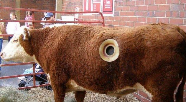 在美国有一个非常奇怪的现象,你会发现几乎每一只牛身上都开着一个“洞”不理解,偶尔还能看见人伸手进去掏东西,可牛居然照样低头啃草,半点痛苦模样都没有。 这可不是虐待牛,反而是帮牛续命的“小窗户”,学名叫瘤胃瘘管,说白了就是在牛的大胃上装个可控的塑料塞子。 要搞懂这东西的用处,得先说说牛的胃有多特殊——咱们人就一个胃,牛却有四个,最大的那个叫瘤胃,占了肚子的三分之二还多,活像个24小时不停转的发酵罐。里头装着上千种微生物,专门帮牛分解草料里难消化的纤维,每天能处理几十公斤食物,还会产生几百升气体呢。 可人工养殖的牛跟野生的不一样,为了让肉牛长得快、奶牛产奶多,养殖户会喂不少谷物,草反而给得少,还把牛圈在小空间里不让怎么动。这就麻烦了,瘤胃里的微生物一下子适应不了,很容易闹脾气:要么发酵太猛产生的气排不出去,30分钟就能把牛的肚子撑得像鼓,活活憋死;要么谷物消化不好,引发酸中毒,牛吃不下东西还拉肚子,严重的就活不成了。这时候,那个“洞”就派上大用场了。 先说最关键的救命用处。要是牛突然瘤胃胀气倒地,员工不用等兽医,直接打开那个塑料塞子,10来秒就能排掉一大罐子气,牛立马就能站起来,比给汽车换轮胎还快。要是发现牛积食了,伸手进去掏出点没消化好的草料,再调整饲料,就能避免酸中毒。有牧场统计过,装了这个“洞”的牛,因为消化问题死的能少一半还多。 除了救命,这洞还是监测牛健康的“智能窗口”。员工定期伸手掏点瘤胃里的草渣,看看颜色、闻闻气味,就知道饲料配得合不合理。现在更方便了,直接把硬币大的传感器从洞里放进去,牛的胃里温度、酸碱度这些数据,每隔15分钟就传到手机上,跟咱们戴智能手环测心率似的。荷兰有个牧场用这办法,把牛的酸中毒发生率从27%降到了9%,一百头牛一年能多产一吨多奶,划算得很。 给药和“借菌”也靠这个洞。以前给牛喂药,要么灌得牛呛咳,要么药物没到瘤胃就失效了。现在打开塞子直接把药送进去,效果又快又好。要是哪头牛消化功能弱,还能从健康高产的牛肚子里掏点瘤胃内容物,通过洞“移植”过去,相当于给它借点“消化帮手”,24小时就能恢复食欲。美国有大学算过,这么做能让病牛提前3天吃料,一头牛能省好几十美元的饲料钱呢。 那为啥牛一点都不疼?这得从做手术说起。装这个“洞”叫瘤胃造瘘术,全程也就30分钟。先给牛饿一天,让瘤胃空一点,然后在肚子侧面找个合适的位置,局部麻醉——就像咱们拔牙打麻药一样,牛当时啥感觉没有。兽医切个4厘米左右的小口,把瘤胃提上来,塞个无毒的塑料瘘管,再缝几针固定好。当天牛就能正常反刍吃草,根本不耽误干活。 更关键的是牛的生理特点。瘤胃本身就没多少痛觉神经,就像咱们的头发丝一样,对触碰不敏感。而且术后两周,瘘管周围的皮肤和瘤胃壁就长在一起了,形成了一个牢固的“通道”,拔开塞子伸手进去,就像从口袋里掏东西,牛自然没啥感觉。有人说这痛感比人打耳洞还轻,你看打耳洞都能忍,何况牛呢。 平时这个洞是用盖子封死的,防水防脏,牛打滚、吃草都不影响。就算打开操作,只要动作轻快点,牛顶多抬抬头看一眼,接着低头啃草,完全不会表现出痛苦。反而因为有了这个洞,消化问题能及时解决,牛少生病,活得还更舒坦呢。 可能有人会觉得这是虐待动物,其实恰恰相反。在大规模养殖里,牛很容易因为饲料不当出消化问题,没这个洞的话,好多牛可能活不到出栏。有了这个“小窗户”,养殖户能随时掌握牛的情况,提前预防疾病,反而延长了牛的寿命,产奶产肉量也更高。就像给老年代步车装个压力表,能及时发现故障,反而是保护设备的好办法。 现在不光美国,好多国家的大型牧场都在用这办法。有人还升级了设备,比如把传感器做成药丸大小,让牛吞下去,在瘤胃里待21天,实时传数据,外面用个像路由器的东西接收信号,更方便了。这些技术看着新鲜,本质上都是为了让牛更健康,也让咱们能更稳定地吃到肉和奶。 所以说,牛身上的这个“洞”可不是瞎开的,是养牛户摸索了近百年的“续命外挂”。既解决了牛的消化难题,又方便监测和治疗,关键是牛还不疼。这就跟咱们人定期体检、装假牙一样,都是为了活得更舒坦,只不过牛的“体检窗口”开在了肚子上而已。看着奇怪,其实全是科学养殖的门道呢。