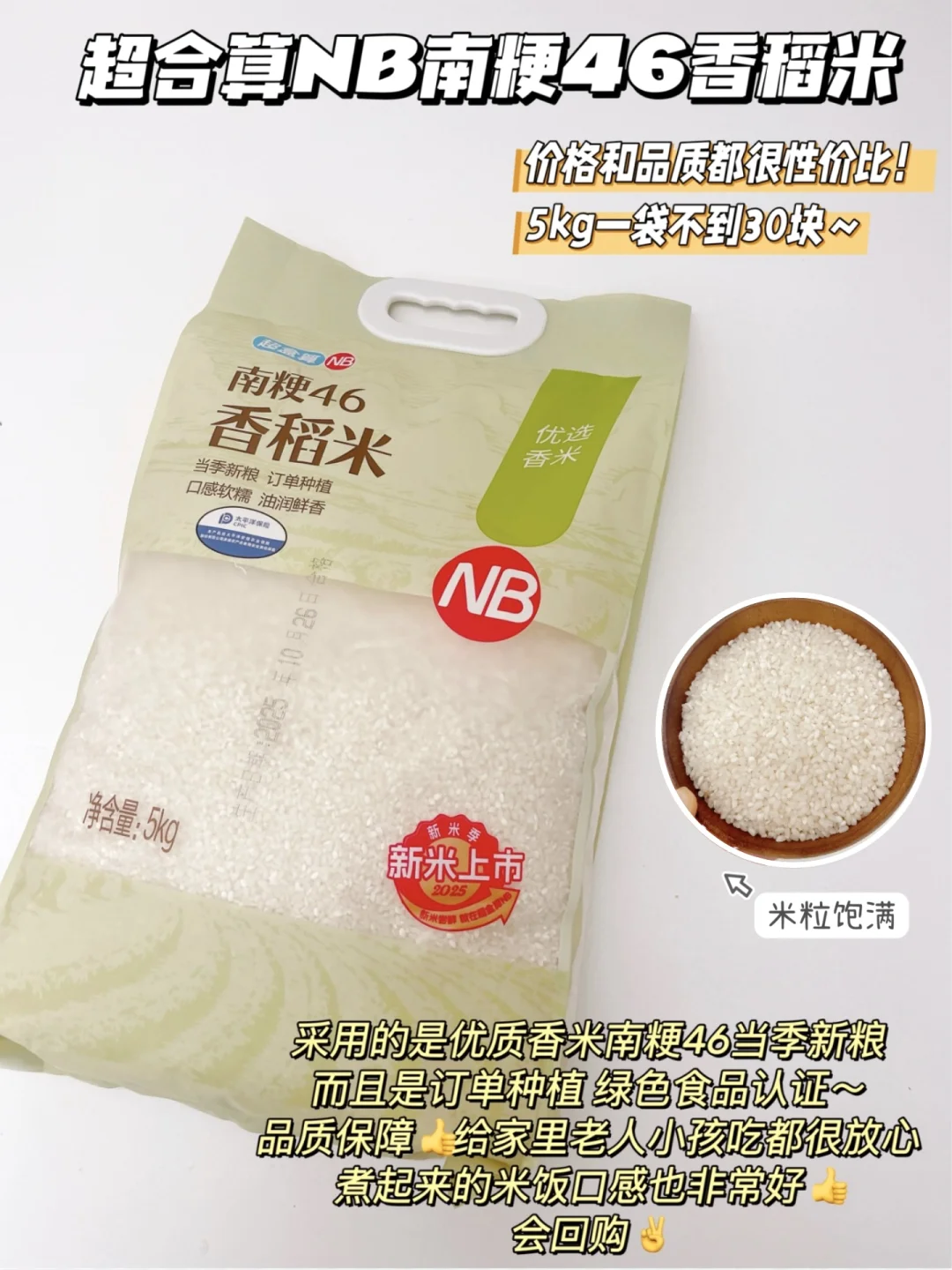 还尝试了一下香稻米,价格也是相当有性价比,5kg才不到30块没想到吧~采用的是优质香米南粳46当季新粮,而且是订单种植,品质保障,给家里老人小孩吃都很放心,煮起来的米饭口感也非常好👍,会回购✌️
