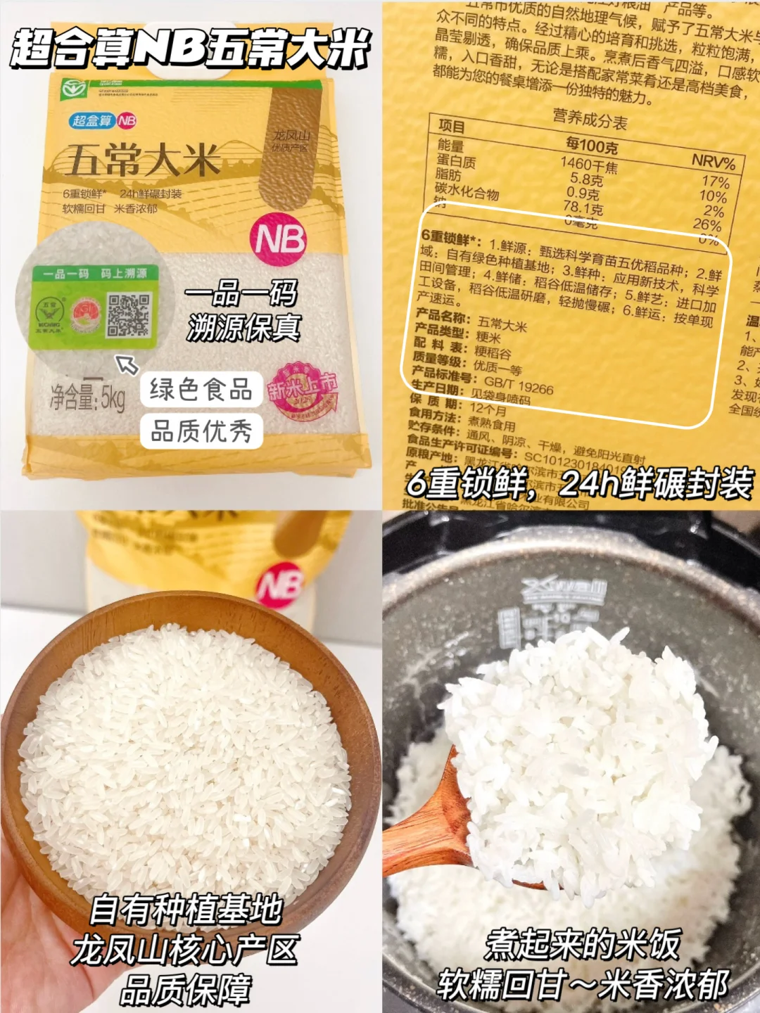 品质也是让人超安心的,新米(五常大米)有新米标,保证是当季的新米,绿色食品认证,一盒一码,溯源保真。自有种植基地,东北龙凤山核心产区,专门承包一块地,怪不得品质优秀,价格也很合适,一袋不到50块👏