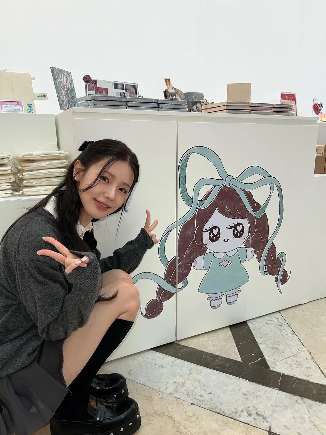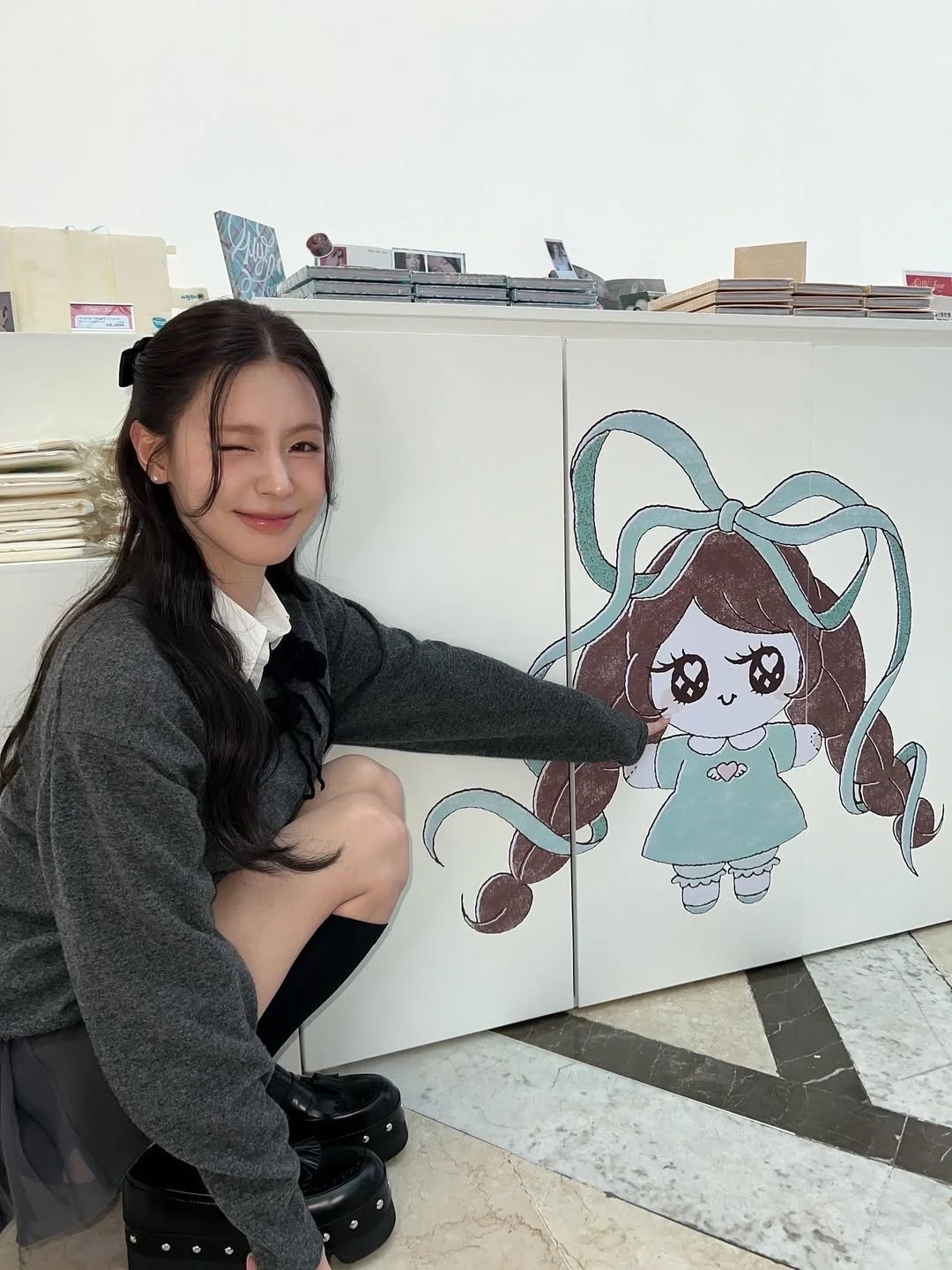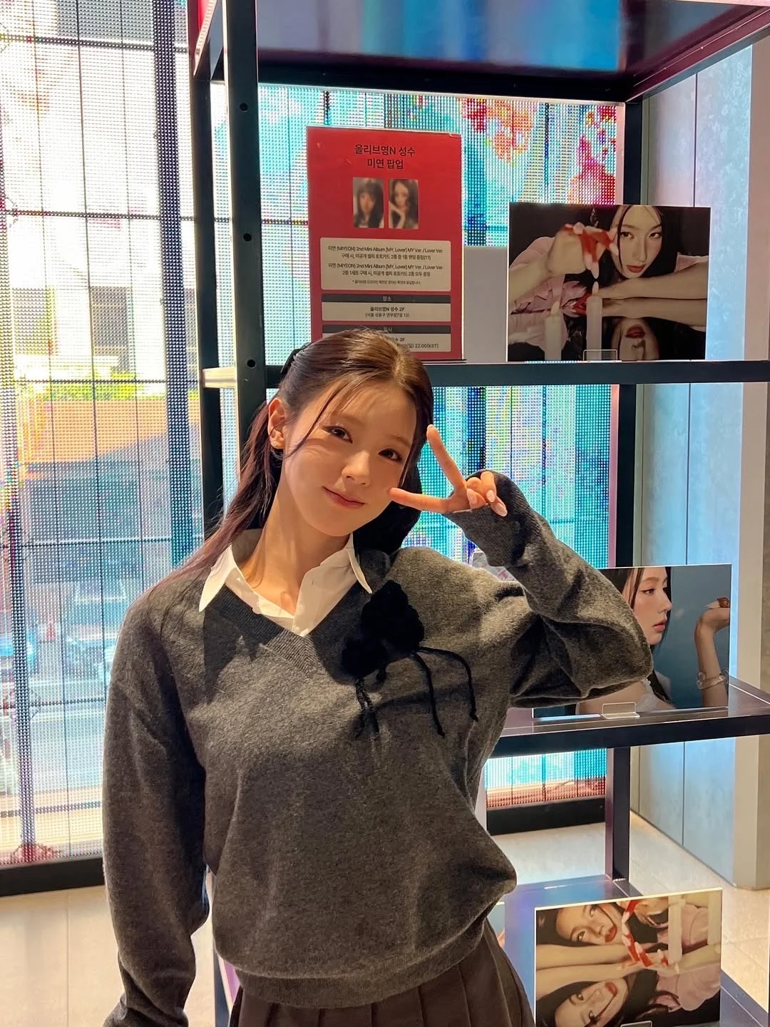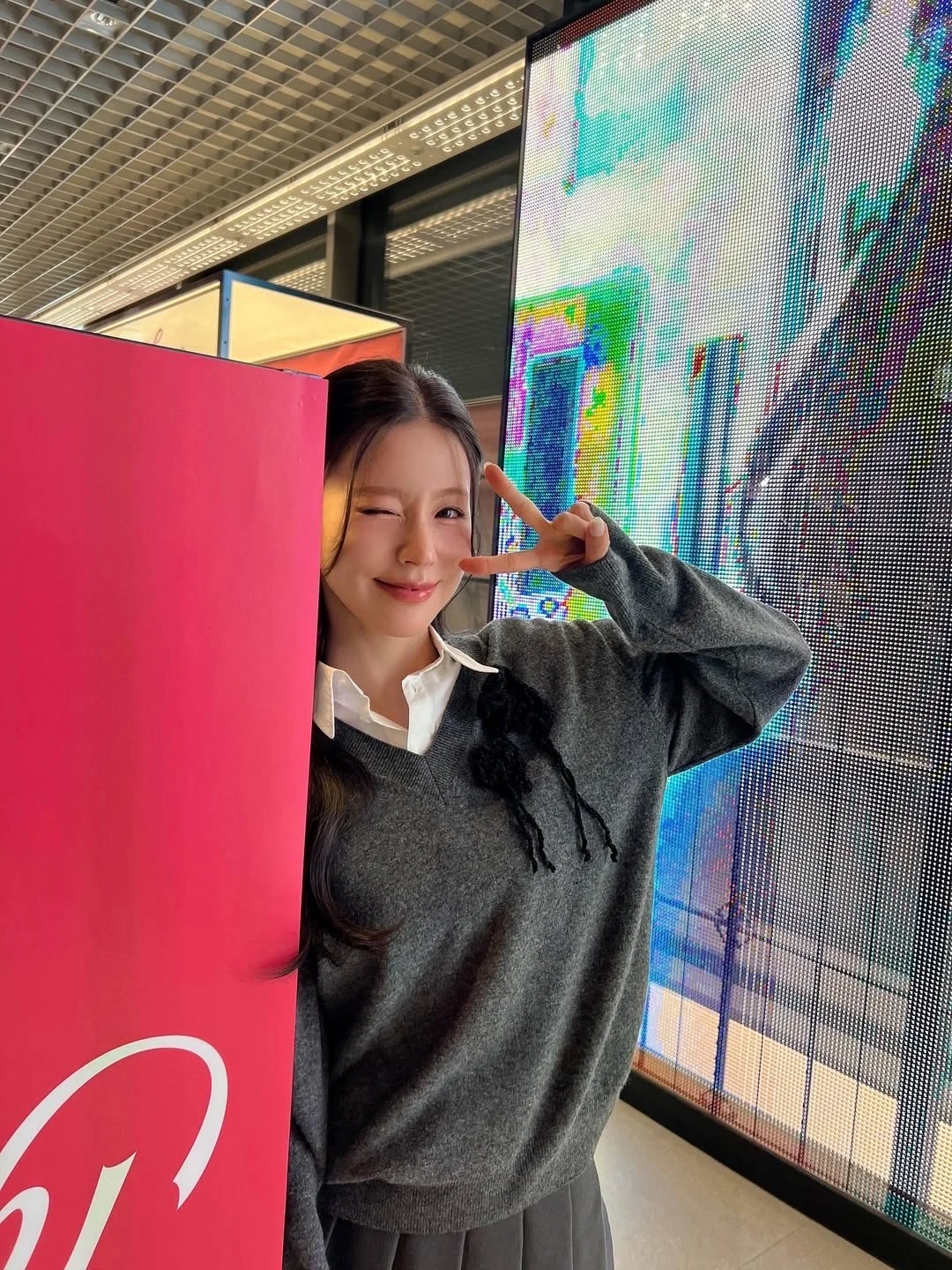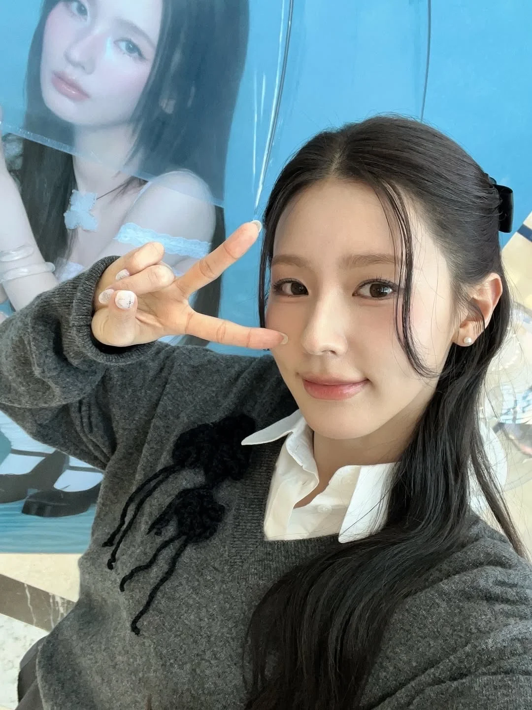 赵美延今日打卡自己的海报,条纹配牛仔裤与袋鼠鞋的松弛与随性,硬照私服都可美! 赵美延