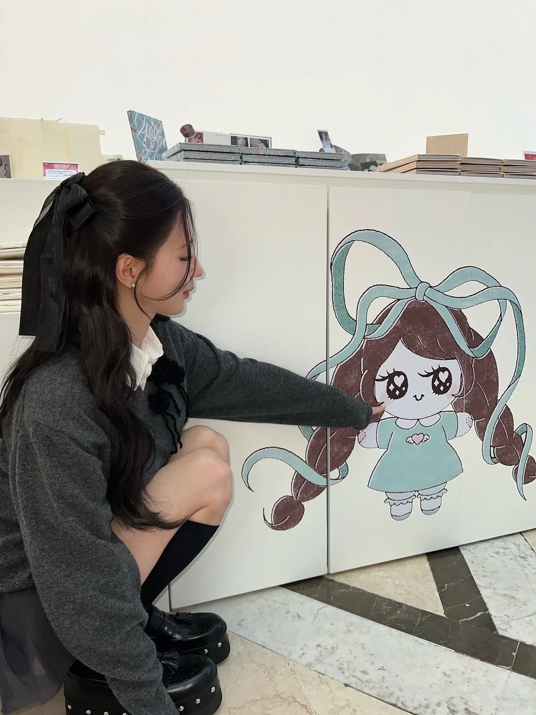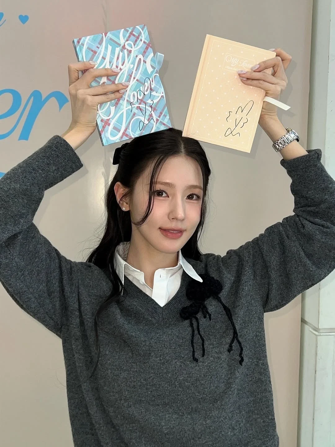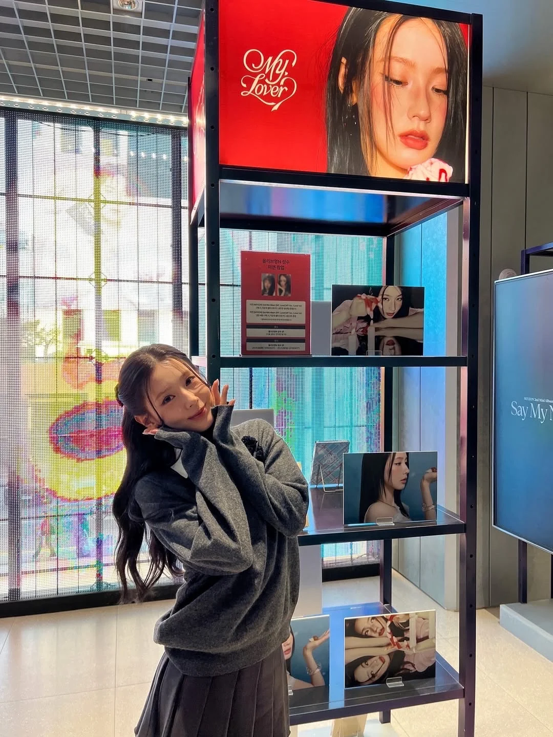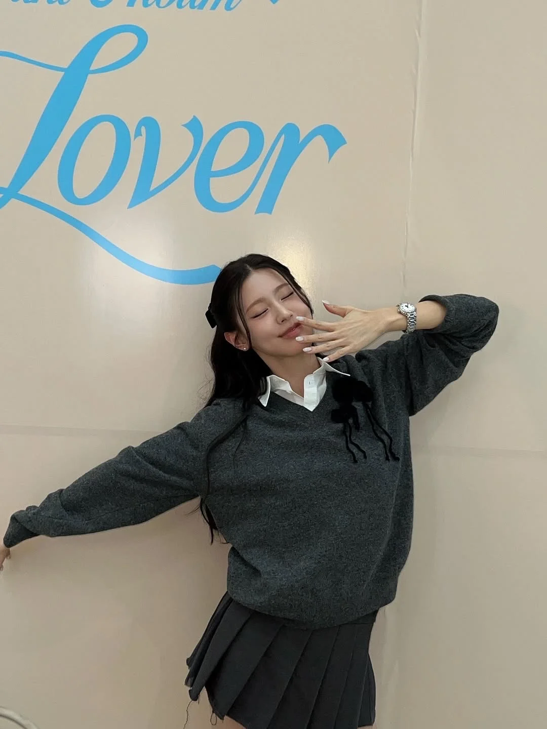 赵美延今日打卡自己的海报,条纹配牛仔裤与袋鼠鞋的松弛与随性,硬照私服都可美! 赵美延