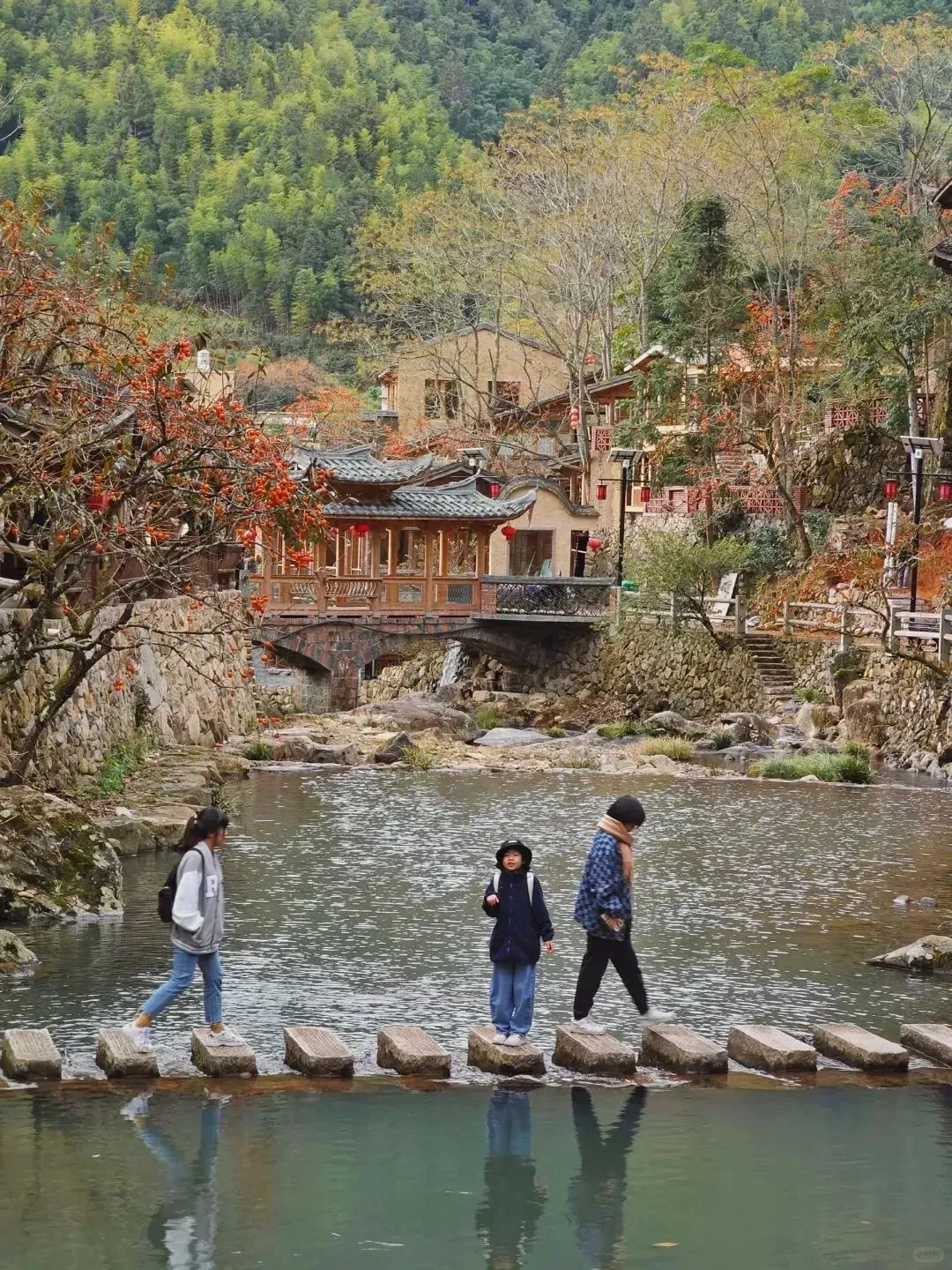 2️⃣ 4个宝藏古村连玩:龙潭里溪边咖啡馆、四坪村橙红柿子林、厦地村先锋书店、墘头村传统造纸术,每个角落都出片!