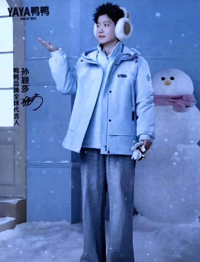 孙颖莎新代言即将官宣,鸭鸭品牌全球代言人。 莎莎官宣代言,现在好像都已经快要习惯了[呲牙] 今天是小雪人莎莎, 羽绒服可以安排上了。 已经手持二十几个代言的莎莎,代言产品涵盖了各个类目, 其中也有相似相近款。 但,现在可以签到孙颖莎就已经很不容易了, 品牌方也不会去考虑竞品的事情。 比如鸭鸭和李宁,有重叠款。 孙颖莎还是太强大了。