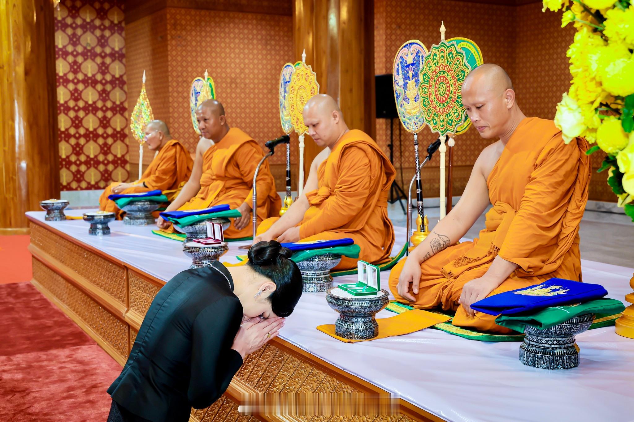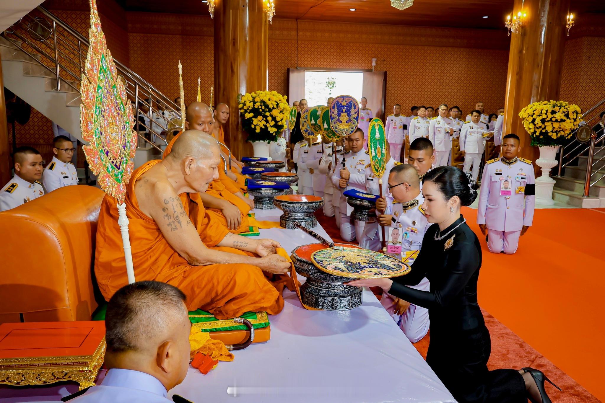 王室[超话]王室泰国王室小主 2025年11月5日,恰由特拉小主在那空拍侬府送佛衣。这个妆容好老气啊,本来她长得还可以,化妆师扣大分[允悲]