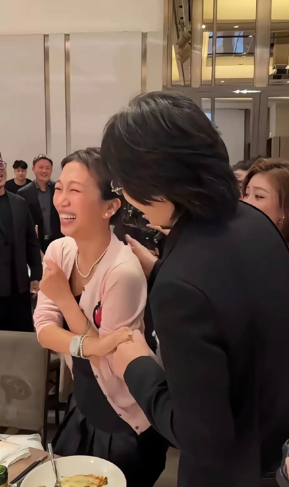 52岁林有慧满月酒被起哄唱歌,萧敬腾秒上前拥抱宠妻。