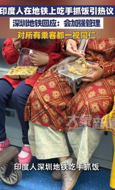 滚回自己的国家!10月25日,广东深圳,几名印度人坐地铁时,竟然在大庭广众之下吃手抓饭!虽然有人上前劝阻过他们,不料,印度人根本不听,地铁站回应:对所有乘客都一视同仁,并不会因为是外国人不管。 10月25日,广东深圳地铁内,一段视频引发了全网的强烈关注。 视频中,几名印度人席地而坐,在地铁车厢中当众用手抓饭吃,神情自若、谈笑风生,完全无视周围乘客的目光和公共秩序。 事件发生后,不少网友感叹:“这哪像坐地铁,简直像在野餐!” 据现场目击者拍摄的视频显示,事件发生在当日下午5点多,一列从深圳福田开往罗湖方向的地铁车厢内。 当时正值下班高峰期,车厢内人流较多。几名肤色黝黑、口音明显的外籍男子坐在角落里,打开塑料饭盒,用手抓起米饭和菜肴直接食用。 米饭颗粒散落在地上,气味在封闭的车厢内弥漫开来,引起了不少乘客的不适。 一名中年女士上前提醒道:“先生,这里不能吃东西,这里是地铁。”然而,那几名印度人似乎听不懂中文,只是笑笑,并继续用手进食。 旁边一位年轻男子用英文补充道:“This is subway, no eating.”(这里是地铁,不能吃东西。)但对方只是耸耸肩,仍旧自顾自地进食。 几分钟后,车厢内的不满情绪逐渐积聚。一名乘客气愤地喊出:“滚回你们自己的国家!这里是中国,讲规矩!”这一幕被周围乘客拍下后,很快上传至网络,引发了热烈讨论。 不少网友留言称:“地铁是公共空间,不论国籍都该遵守规则。” “如果换作中国人在国外这样做,恐怕早就被驱赶出去了。”也有人认为:“这只是文化差异,或许他们并非有意冒犯。” 事件迅速登上社交平台热榜。记者随后联系了深圳地铁方面了解情况。 地铁工作人员回应称,他们已经注意到相关视频,经查当时列车上确实有几名外籍乘客在车厢内进食的行为。工作人员在下一站上车进行劝阻,对方随即停止了进食。 对于公众质疑“地铁方是否对外国人网开一面”,深圳地铁方面明确表示:“地铁作为公共交通工具,对所有乘客一视同仁,不会因为国籍而区别对待。 无论是中国人还是外国人,只要违反车厢管理条例,我们都会依法依规处理。” 截至目前,该视频播放量已超过500万次,评论区中支持地铁方“平等管理”的声音居多。多数网友认为,尊重并遵守所在国的公共秩序,是每一个国际旅客的基本素养。